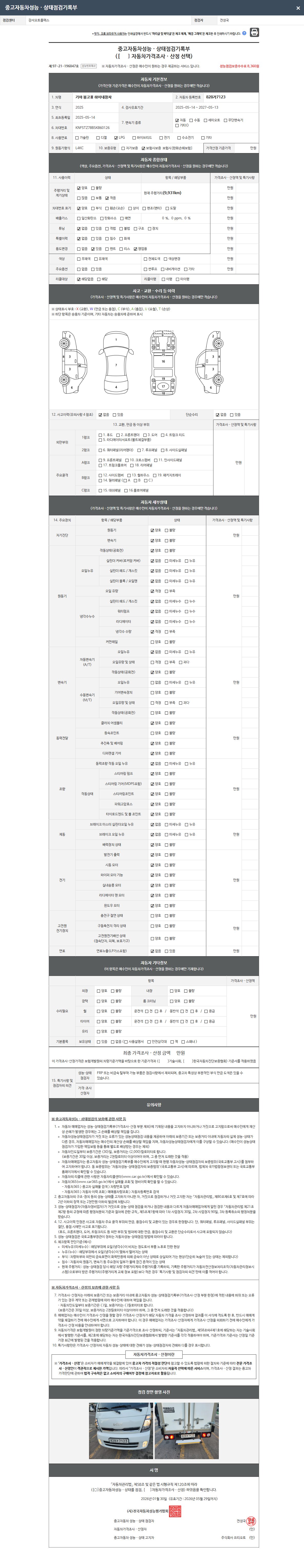 - 2. 차량 등록증이나 성능점검지 등을 상담자에게 요청및 확인하시고 사전에 미리 점검 하시기를 권유드립니다.