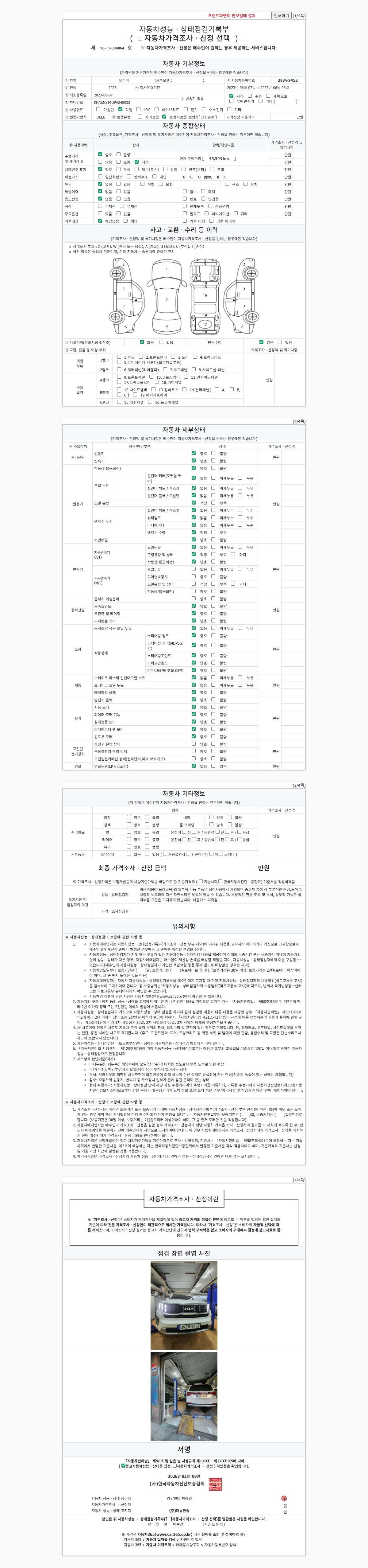 - 2. 차량 등록증이나 성능점검지 등을 상담자에게 요청및 확인하시고 사전에 미리 점검 하시기를 권유드립니다.