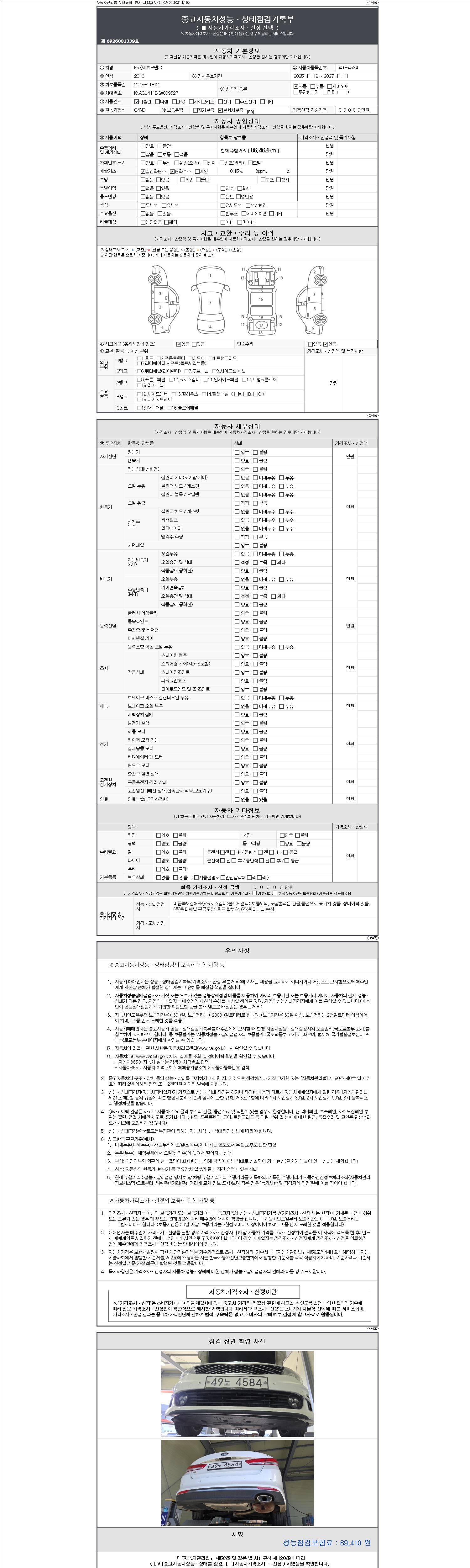 | 주행거리 | 86,462 km | 차량번호 | 49노4584 | 사고유무 | 성능기록부 참조 | 제시번호 | 제 2147483647 호 |