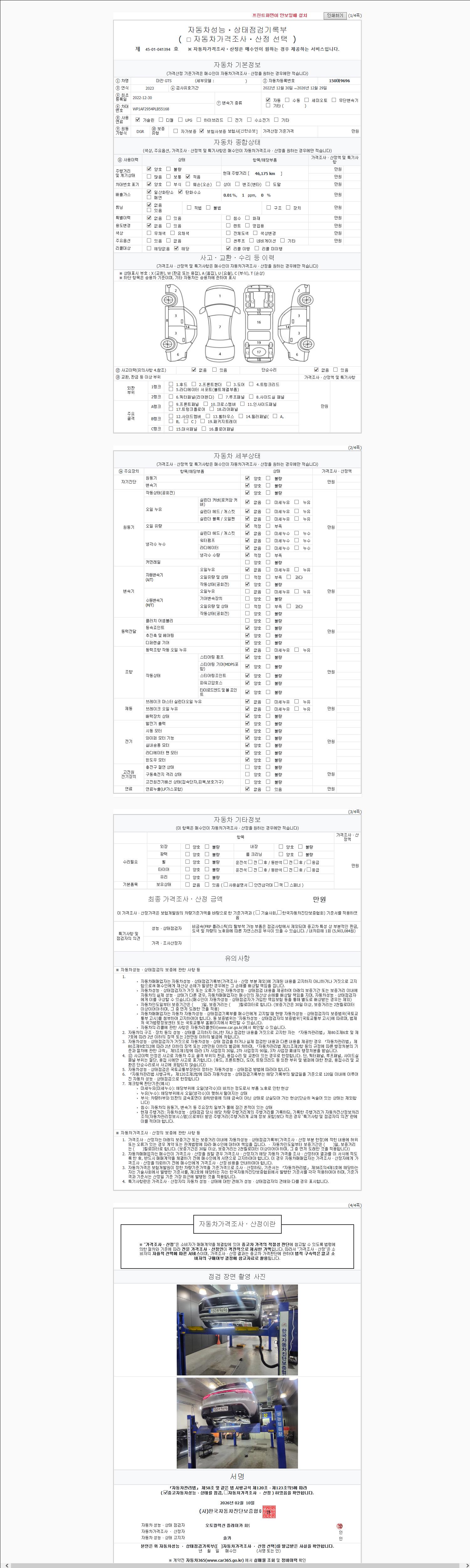 | 주행거리 | 46,175 km | 차량번호 | 150어9696 | 사고유무 | 성능기록부 참조 | 제시번호 | 제 2147483647 호 |