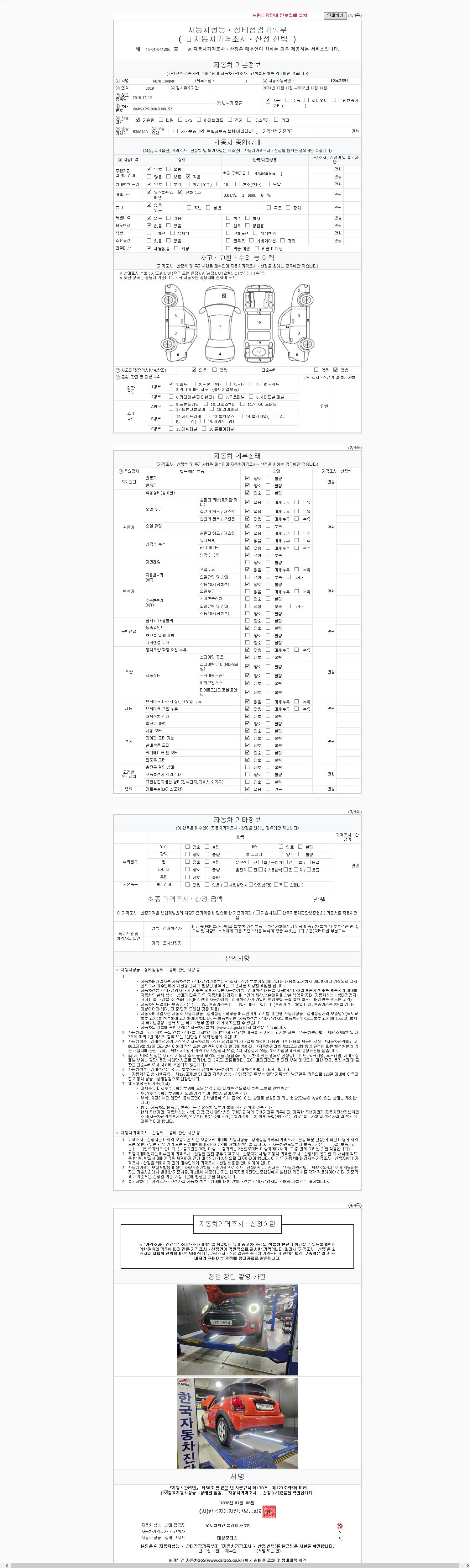 | 주행거리 | 45,666 km | 차량번호 | 12부3554 | 사고유무 | 성능기록부 참조 | 제시번호 | 제 2147483647 호 |