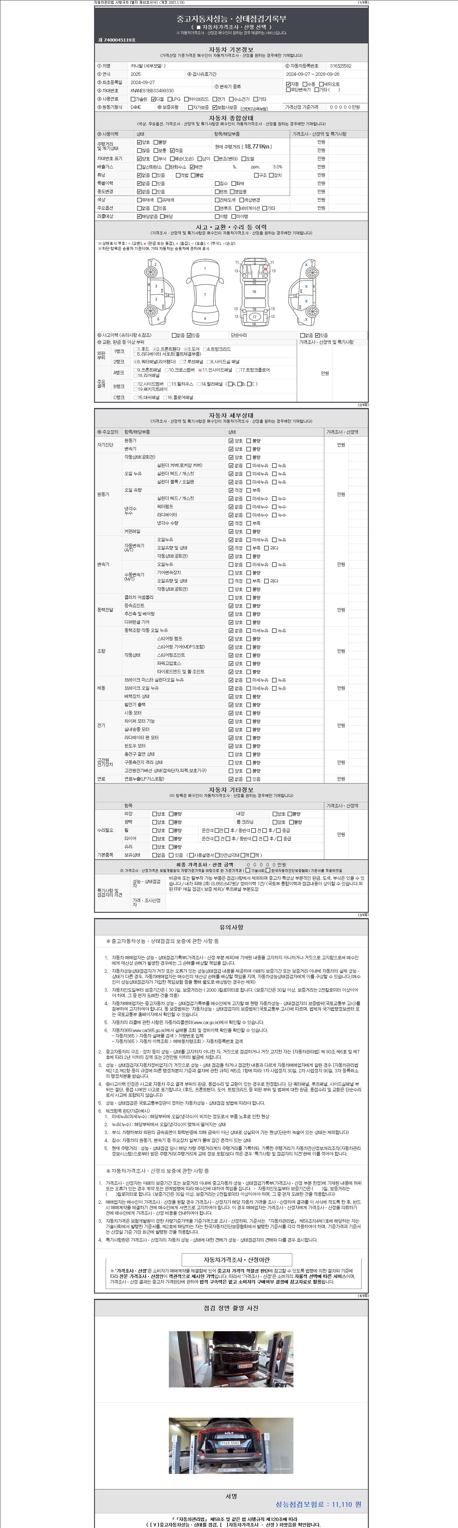 - 2. 차량 등록증이나 성능점검지 등을 상담자에게 요청및 확인하시고 사전에 미리 점검 하시기를 권유드립니다.