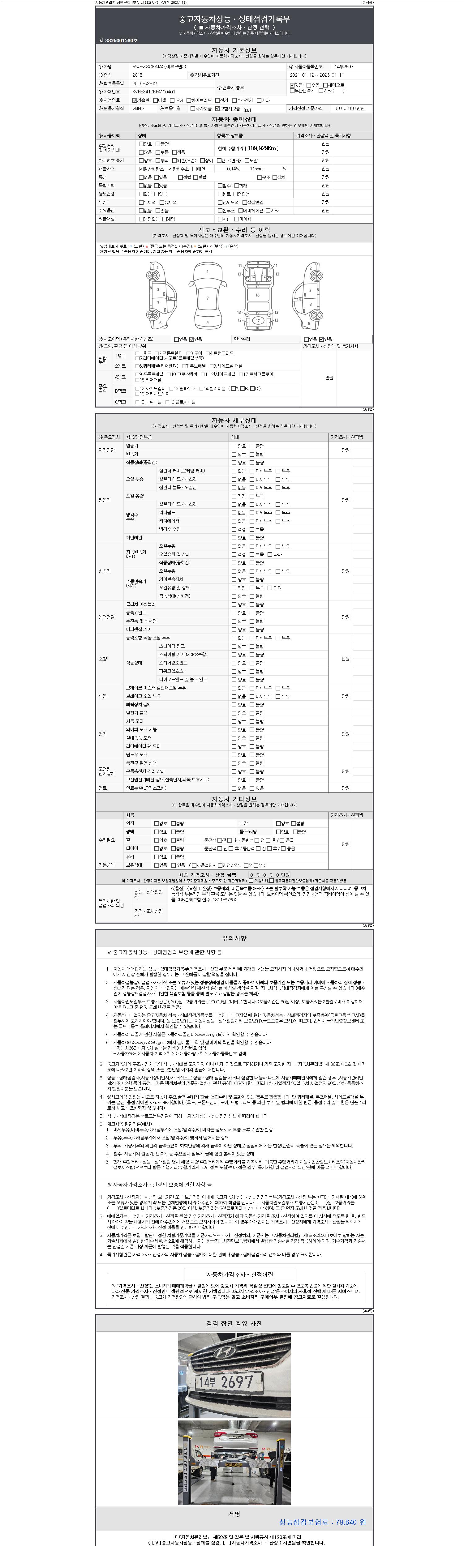 | 주행거리 | 109,929 km | 차량번호 | 14부2697 | 사고유무 | 성능기록부 참조 | 제시번호 | 제 2147483647 호 |