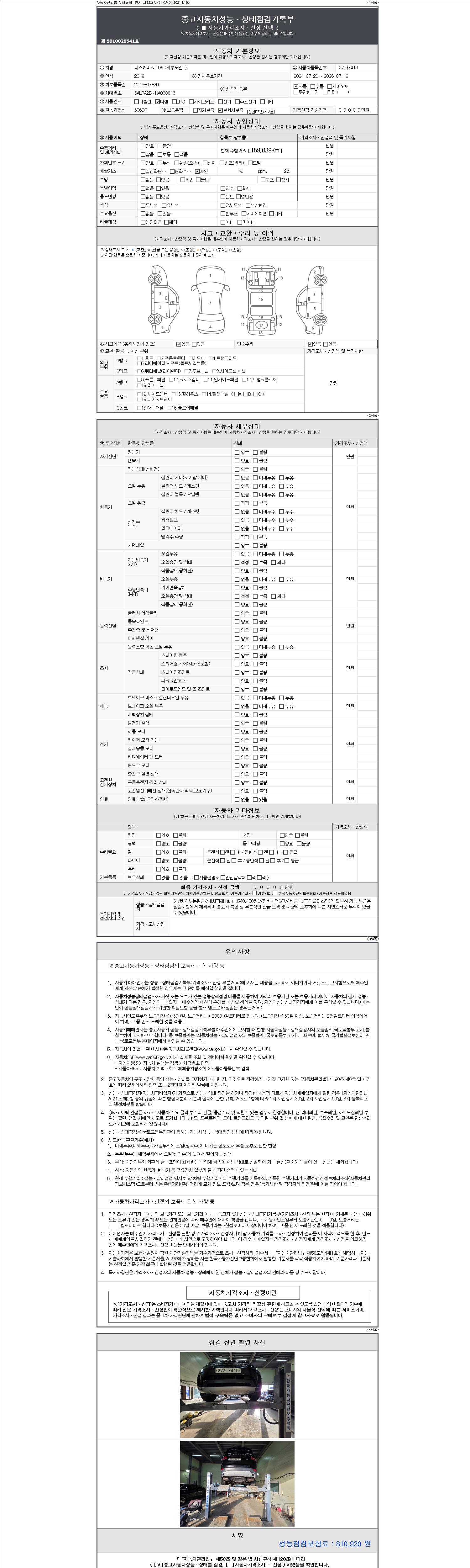 - 2. 차량 등록증이나 성능점검지 등을 상담자에게 요청및 확인하시고 사전에 미리 점검 하시기를 권유드립니다.