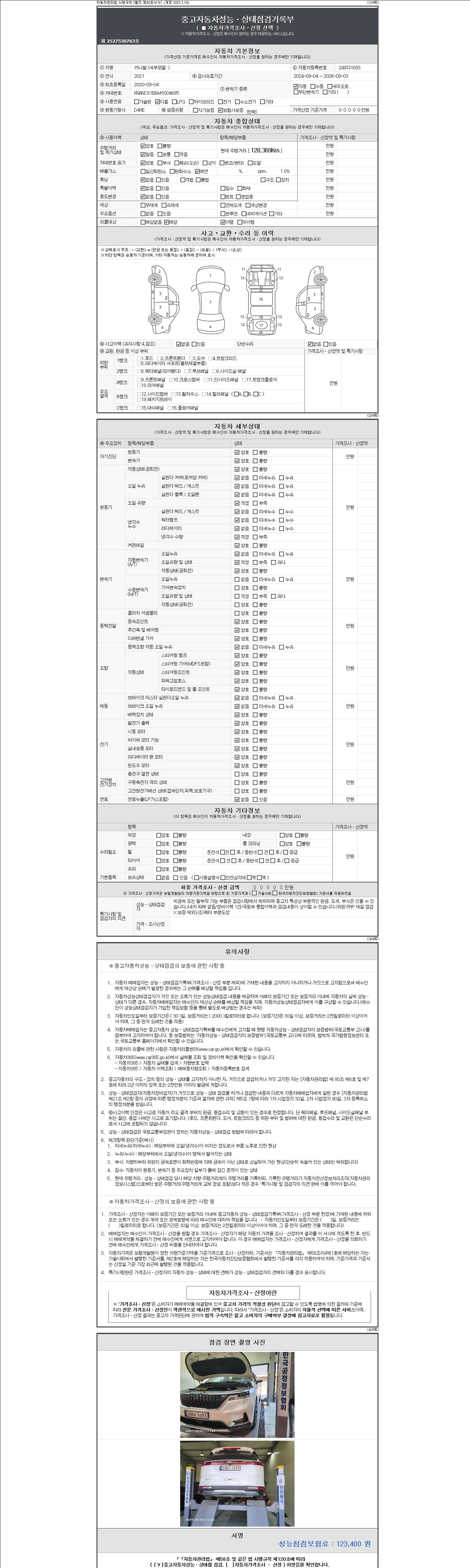 - 2. 차량 등록증이나 성능점검지 등을 상담자에게 요청및 확인하시고 사전에 미리 점검 하시기를 권유드립니다.