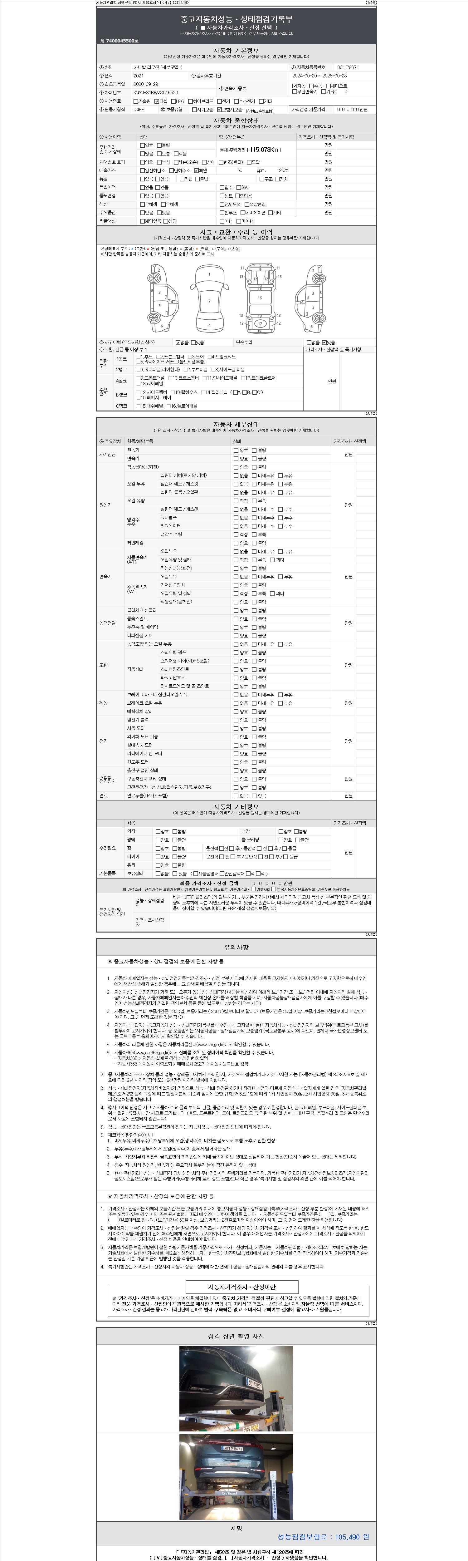 - 2. 차량 등록증이나 성능점검지 등을 상담자에게 요청및 확인하시고 사전에 미리 점검 하시기를 권유드립니다.