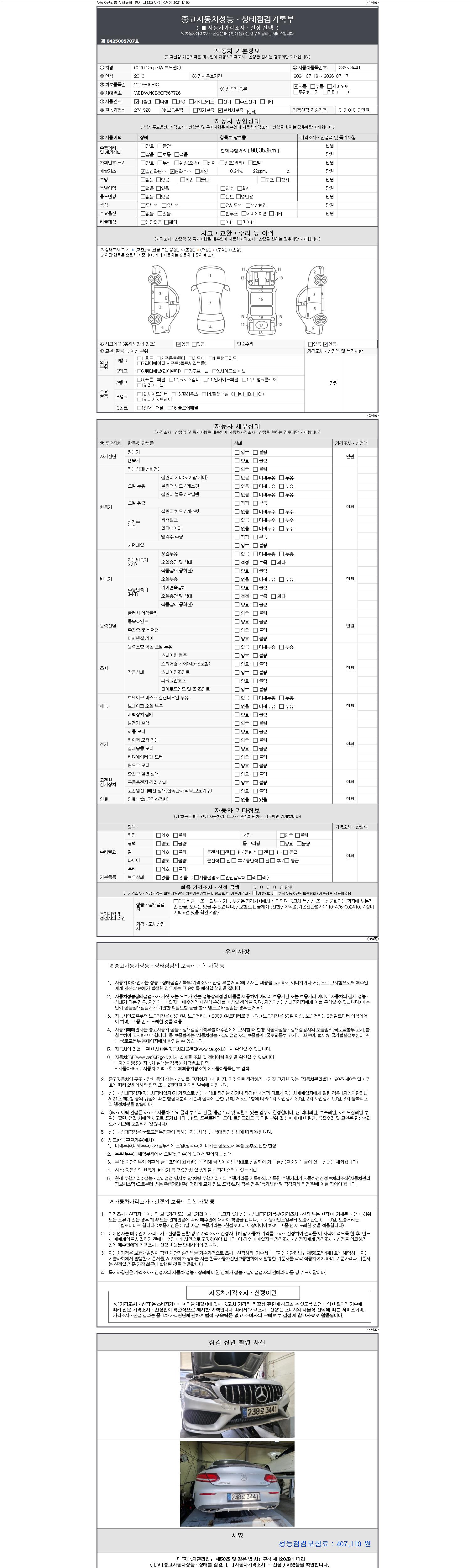 - 2. 차량 등록증이나 성능점검지 등을 상담자에게 요청및 확인하시고 사전에 미리 점검 하시기를 권유드립니다.
