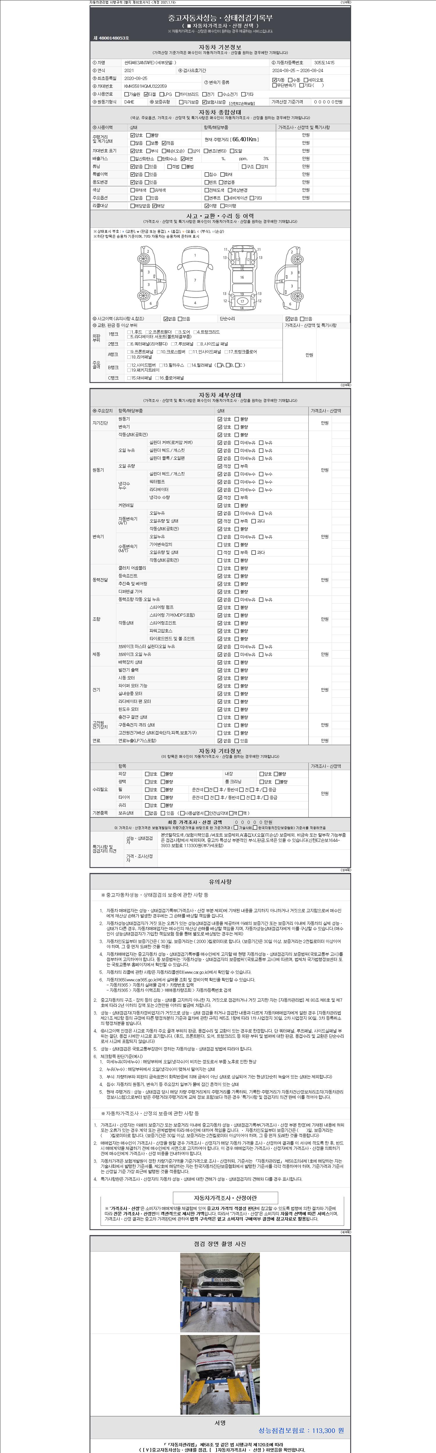 | 주행거리 | 66,401 km | 차량번호 | 305도1415 | 사고유무 | 성능기록부 참조 | 제시번호 | 제 2147483647 호 |