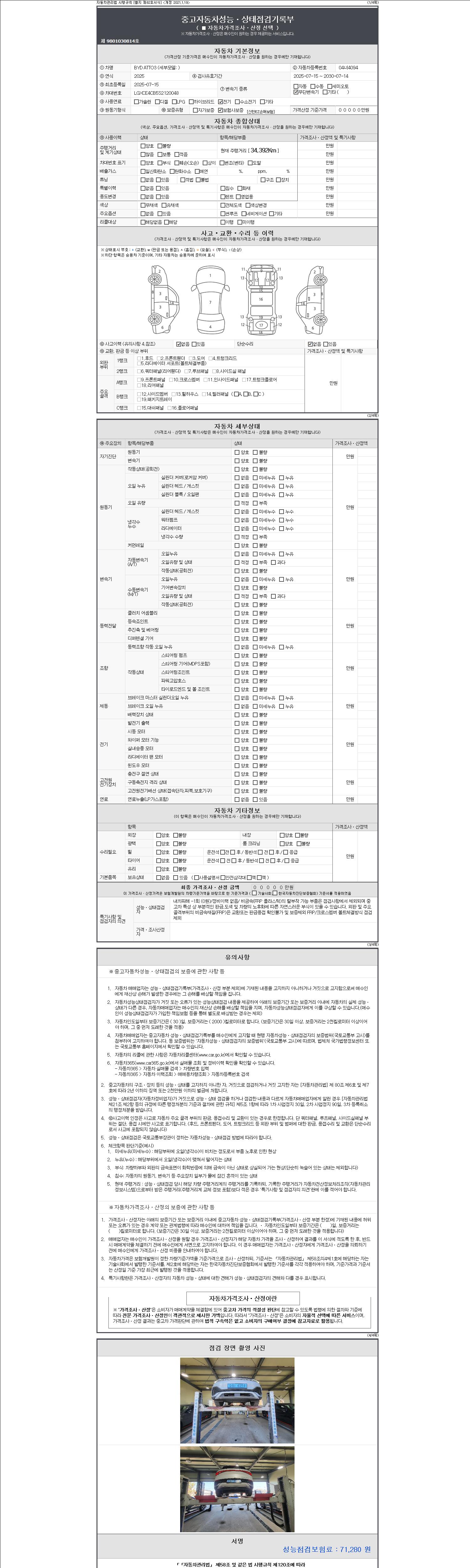 | 주행거리 | 34,392 km | 차량번호 | 04너4094 | 사고유무 | 성능기록부 참조 | 제시번호 | 제 2147483647 호 |