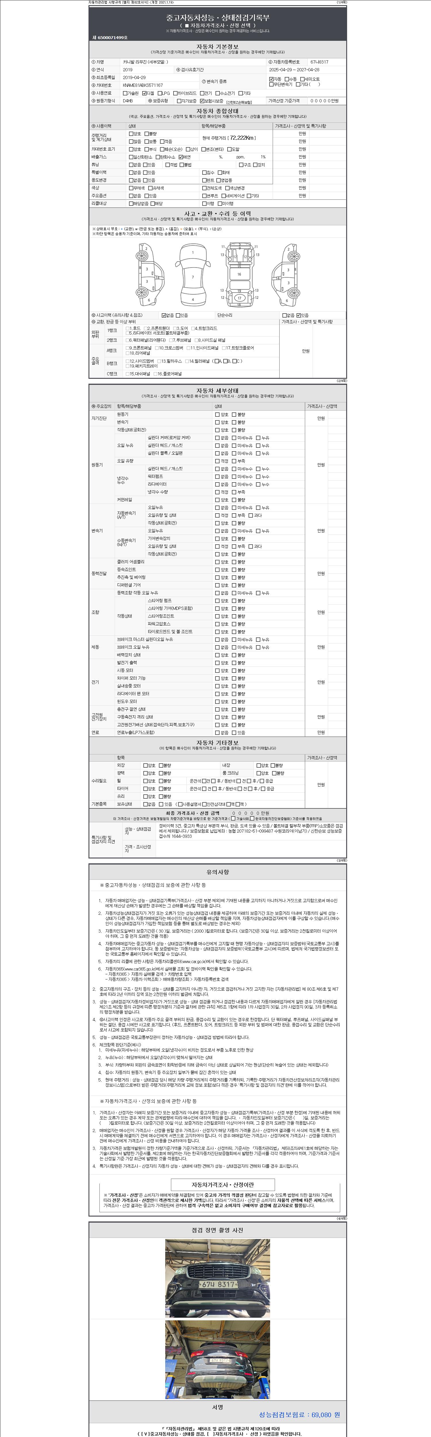 | 주행거리 | 72,222 km | 차량번호 | 67나8317 | 사고유무 | 성능기록부 참조 | 제시번호 | 제 2147483647 호 |