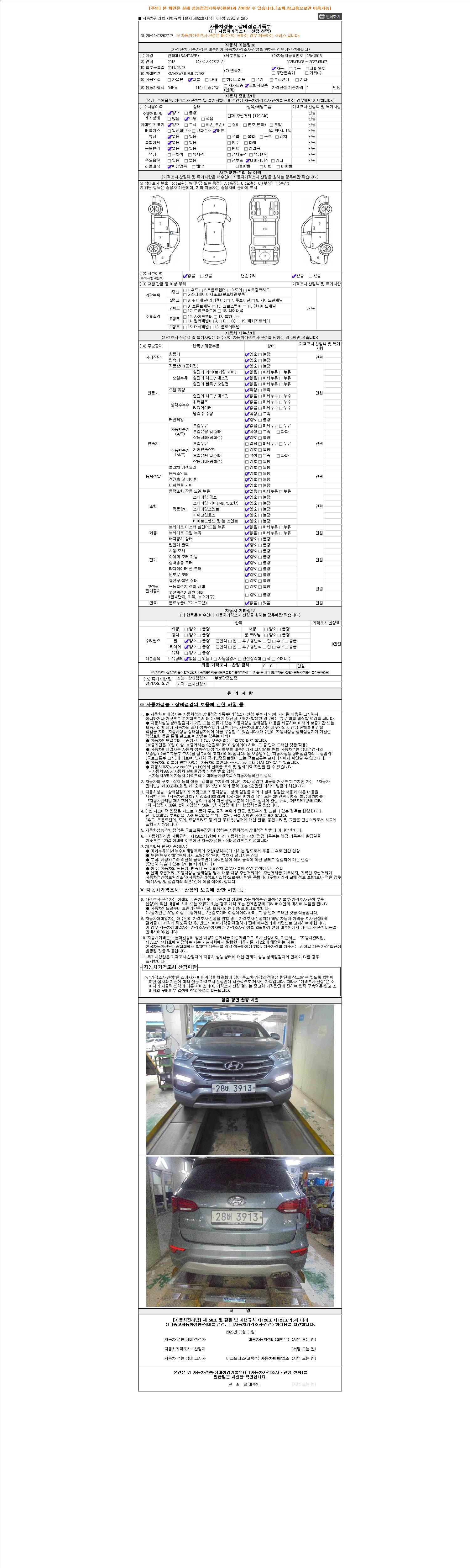 | 주행거리 | 179,648 km | 차량번호 | 28버3913 | 사고유무 | 성능기록부 참조 | 제시번호 | 제 2026040231 호 |