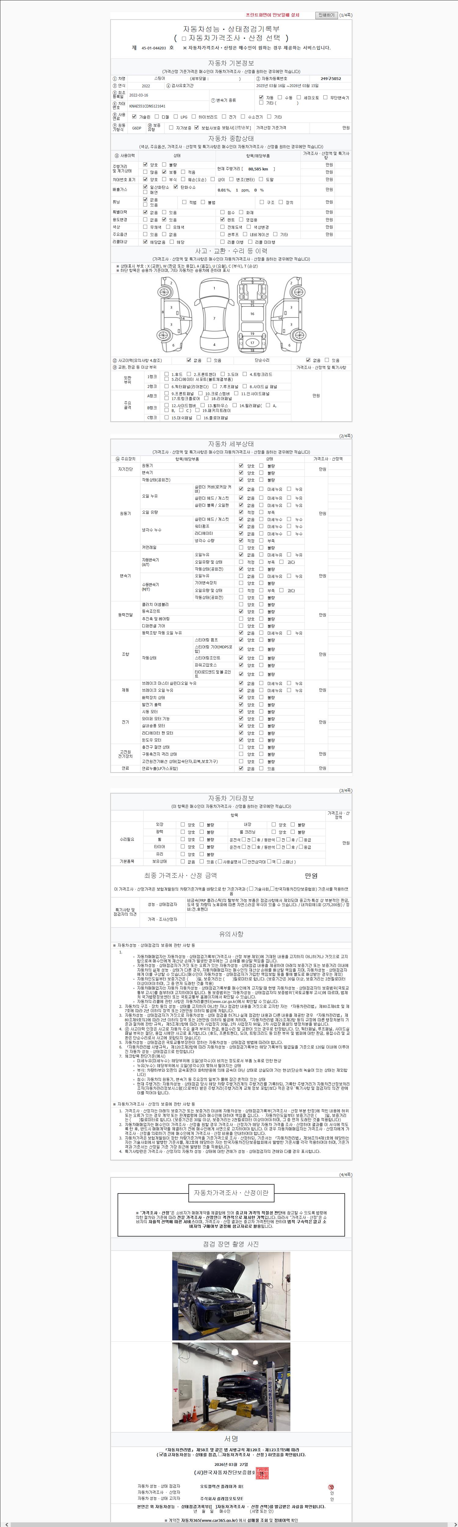 - 2. 차량 등록증이나 성능점검지 등을 상담자에게 요청및 확인하시고 사전에 미리 점검 하시기를 권유드립니다.