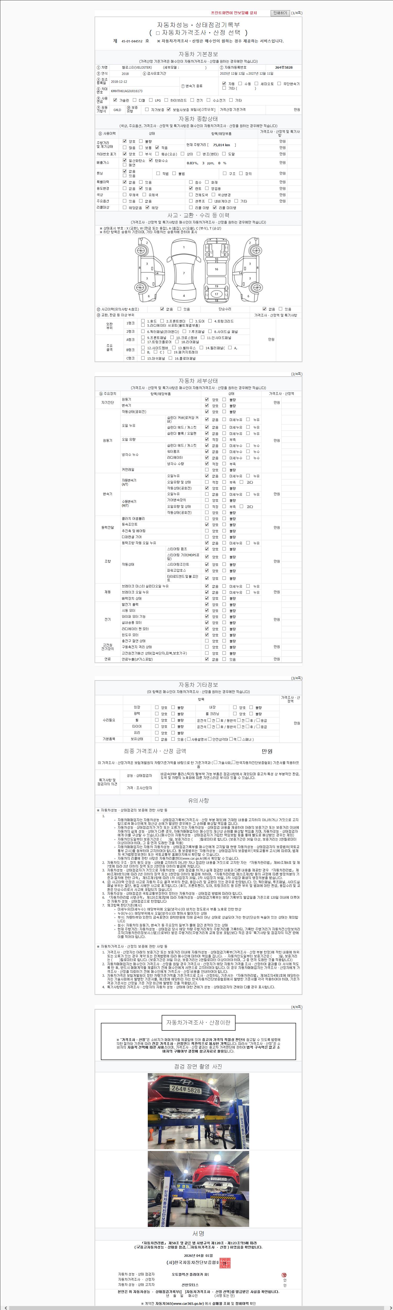 | 주행거리 | 75,014 km | 차량번호 | 264루5828 | 사고유무 | 성능기록부 참조 | 제시번호 | 제 2147483647 호 |
