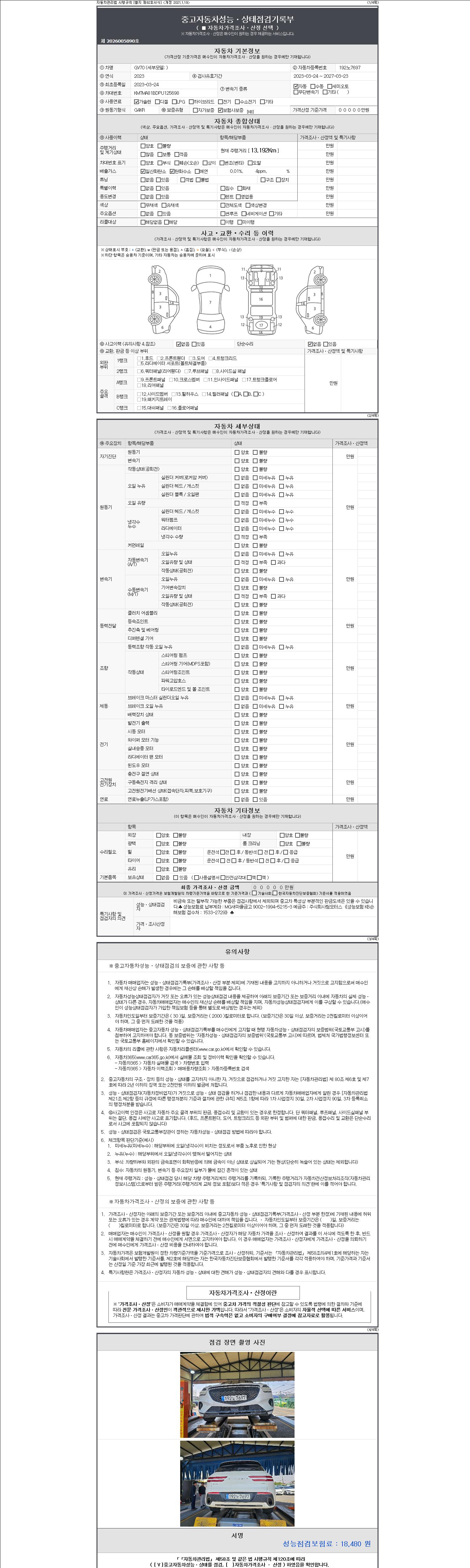 - 2. 차량 등록증이나 성능점검지 등을 상담자에게 요청및 확인하시고 사전에 미리 점검 하시기를 권유드립니다.
