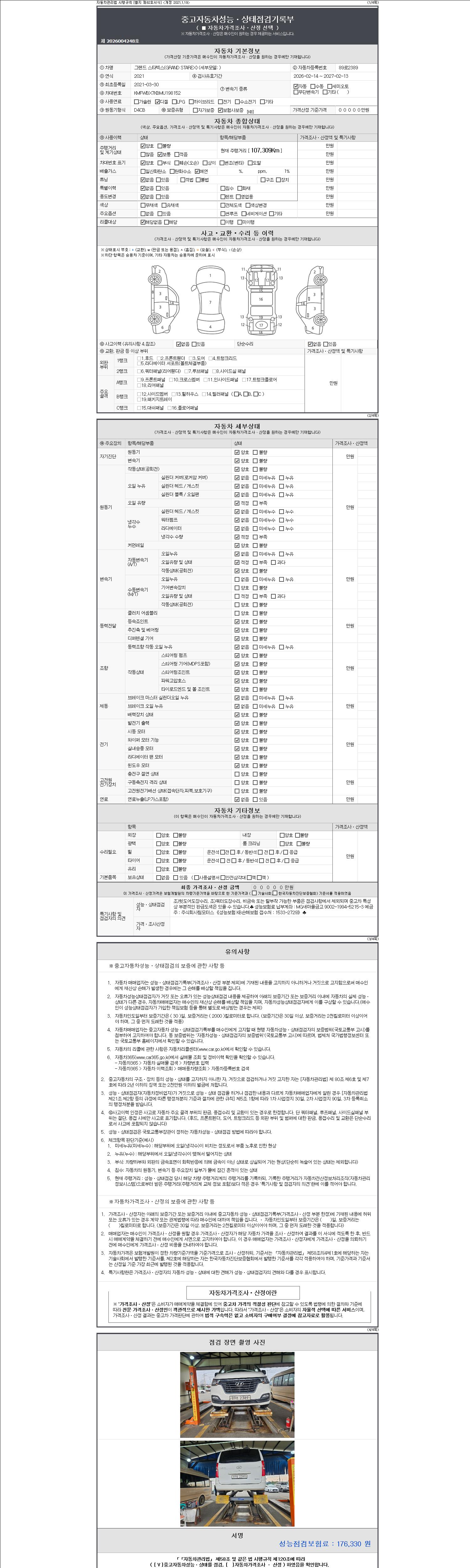 | 주행거리 | 107,309 km | 차량번호 | 89로2389 | 사고유무 | 성능기록부 참조 | 제시번호 | 제 2147483647 호 |