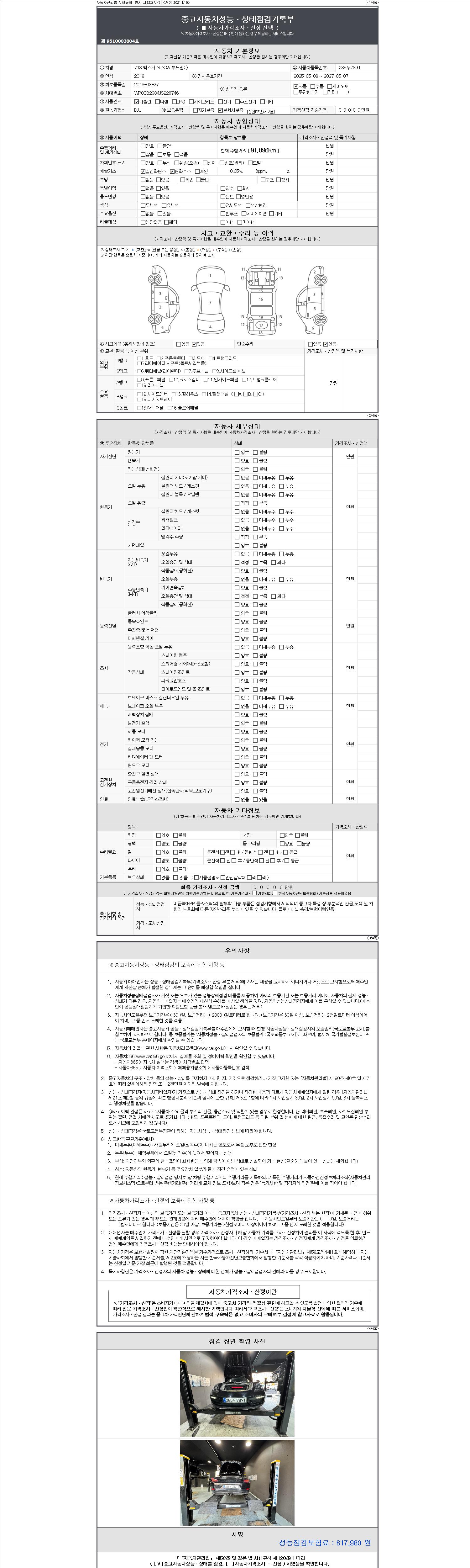 | 주행거리 | 91,682 km | 차량번호 | 285두7891 | 사고유무 | 성능기록부 참조 | 제시번호 | 제 2147483647 호 |