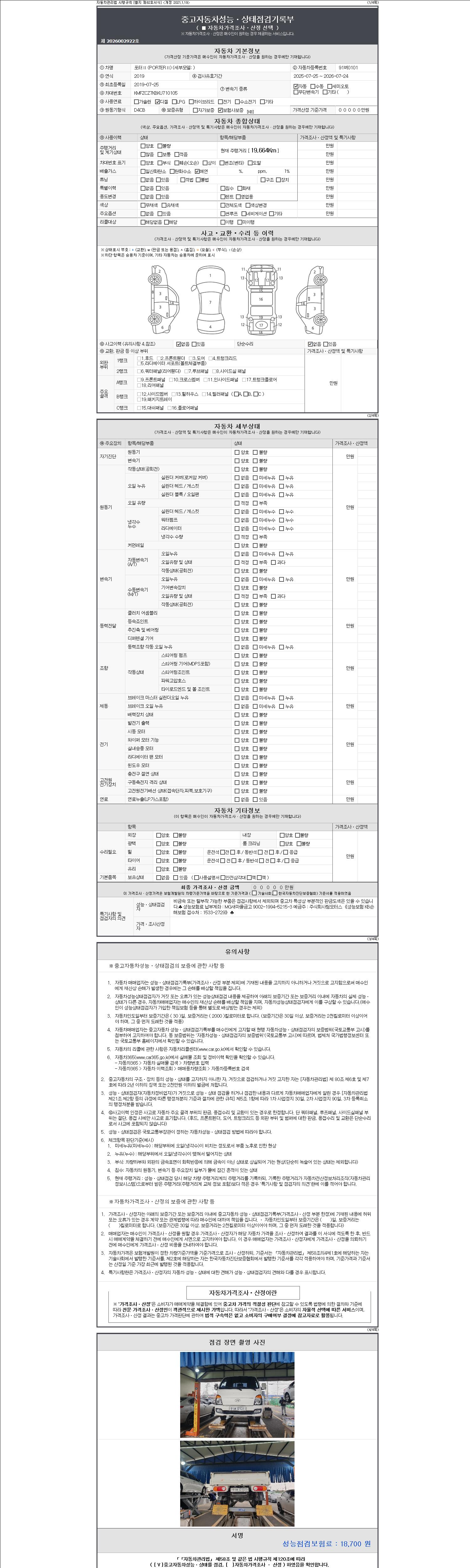 | 주행거리 | 19,664 km | 차량번호 | 91버0101 | 사고유무 | 성능기록부 참조 | 제시번호 | 제 2147483647 호 |