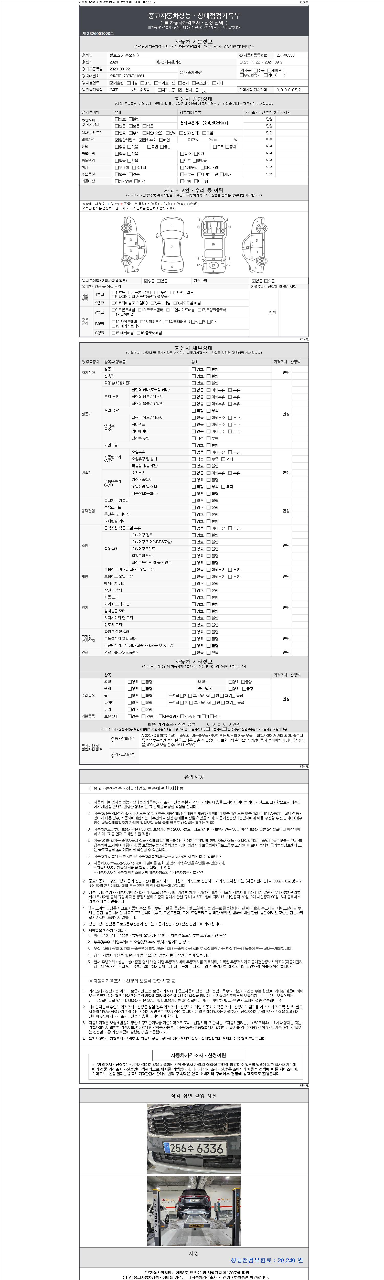 | 주행거리 | 24,366 km | 차량번호 | 256수6336 | 사고유무 | 성능기록부 참조 | 제시번호 | 제 2147483647 호 |