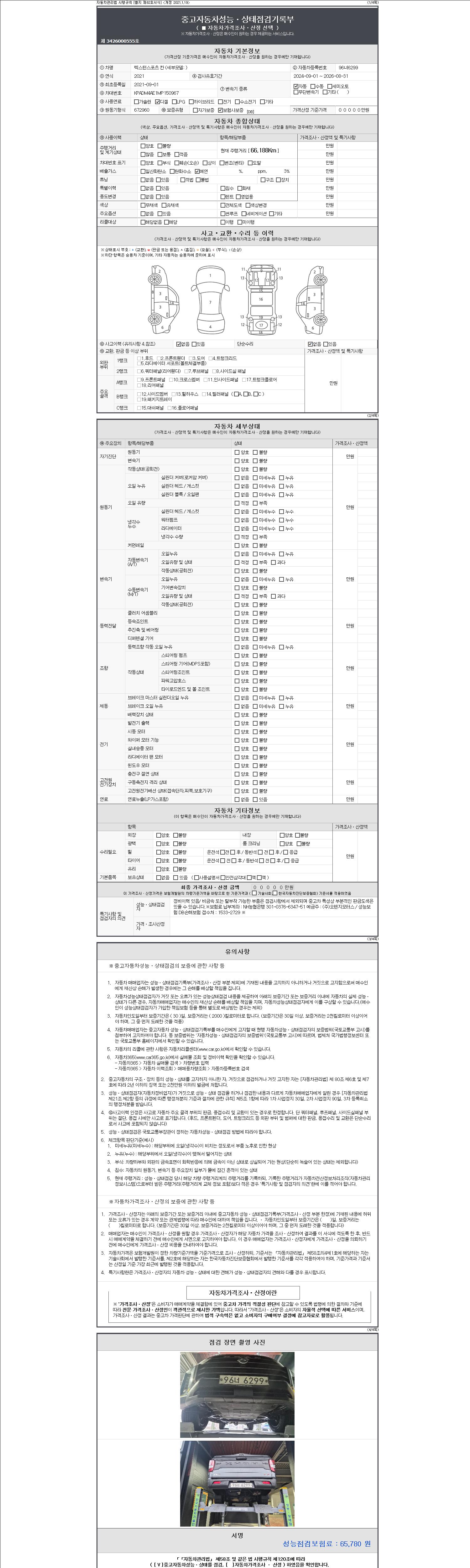 | 주행거리 | 66,188 km | 차량번호 | 96너6299 | 사고유무 | 성능기록부 참조 | 제시번호 | 제 2147483647 호 |