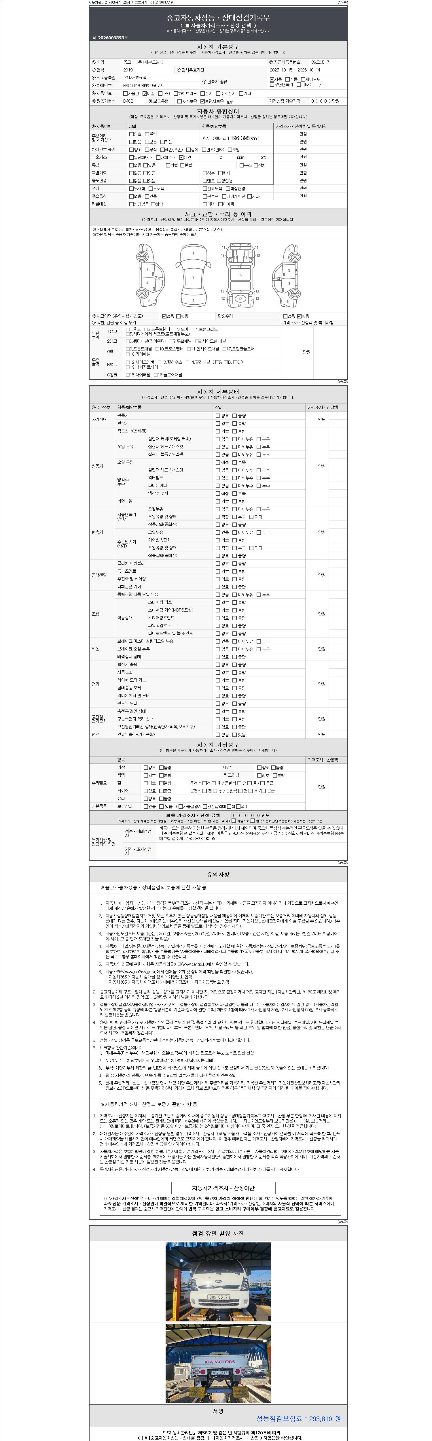 | 주행거리 | 196,398 km | 차량번호 | 88모0517 | 사고유무 | 성능기록부 참조 | 제시번호 | 제 2147483647 호 |