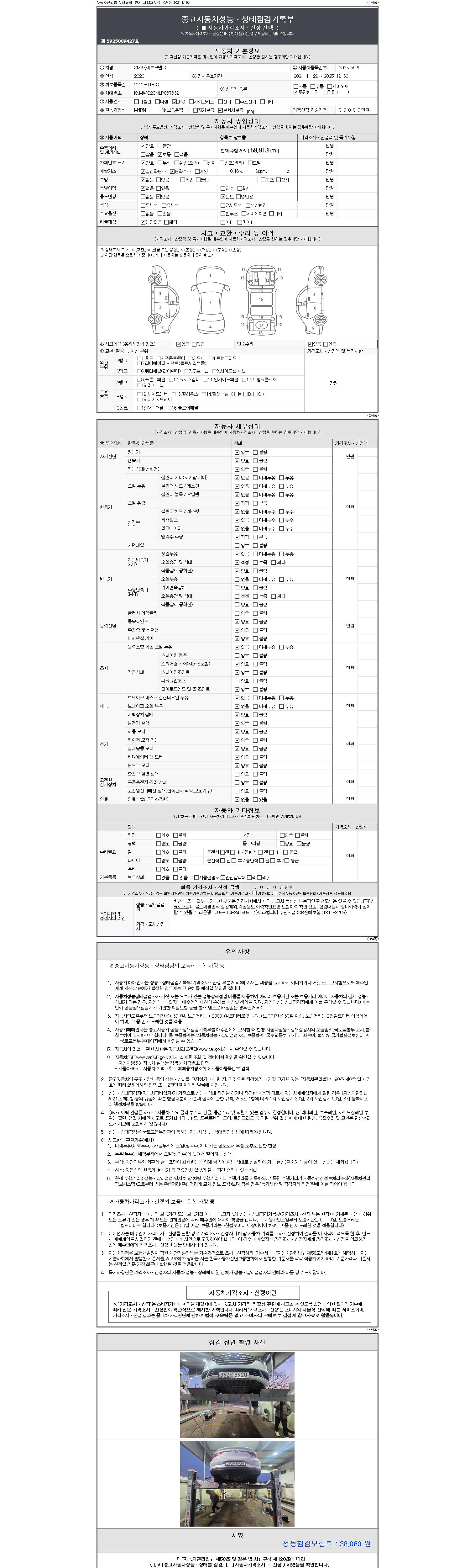| 주행거리 | 59,913 km | 차량번호 | 393로5920 | 사고유무 | 성능기록부 참조 | 제시번호 | 제 2147483647 호 |