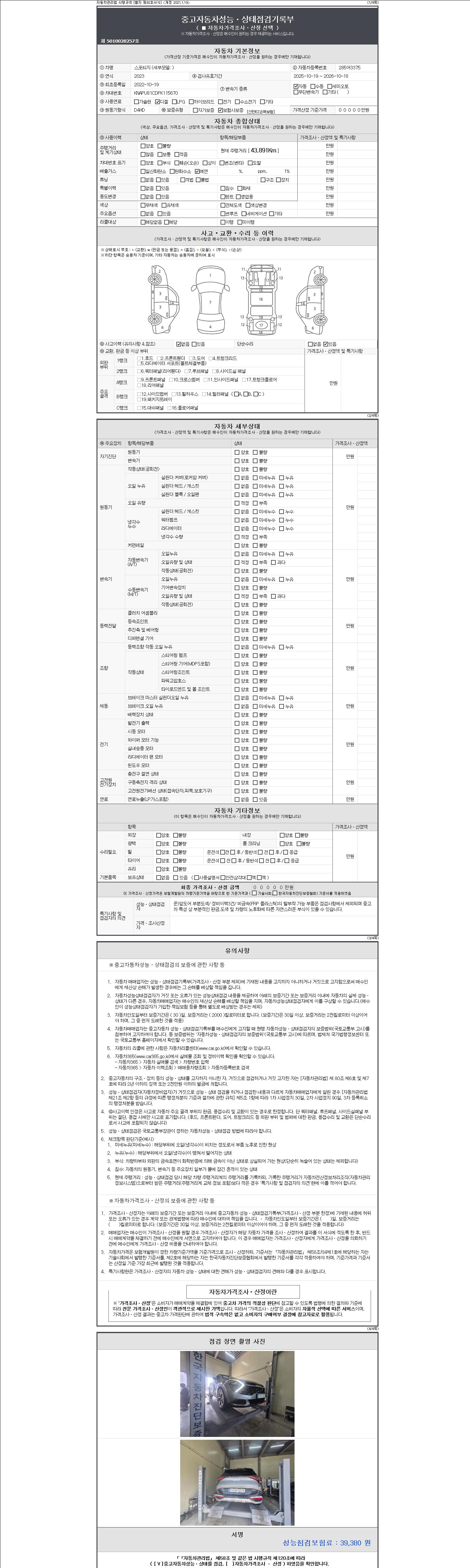- 사고유무 : 성능기록부 참조