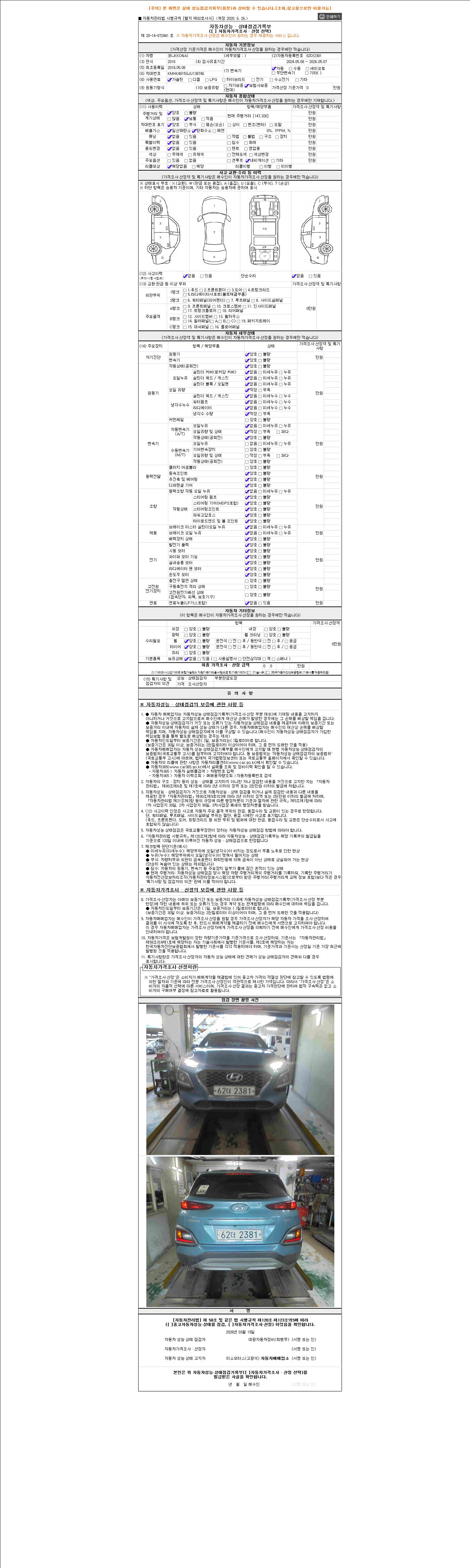 - 2. 차량 등록증이나 성능점검지 등을 상담자에게 요청및 확인하시고 사전에 미리 점검 하시기를 권유드립니다.