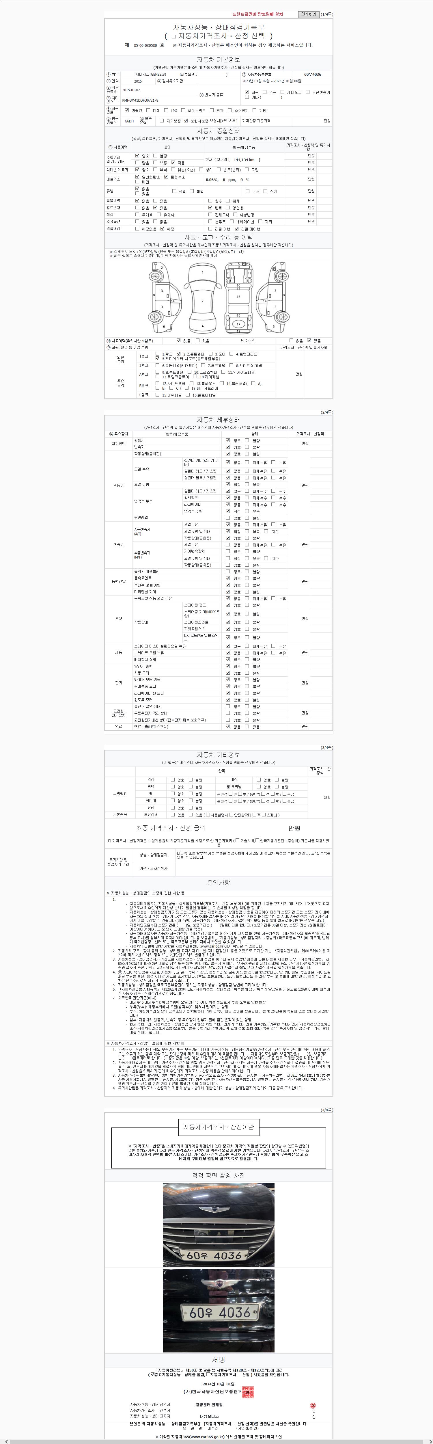 | 주행거리 | 144,134 km | 차량번호 | 60우4036 | 사고유무 | 성능기록부 참조 | 제시번호 | 제 2147483647 호 |