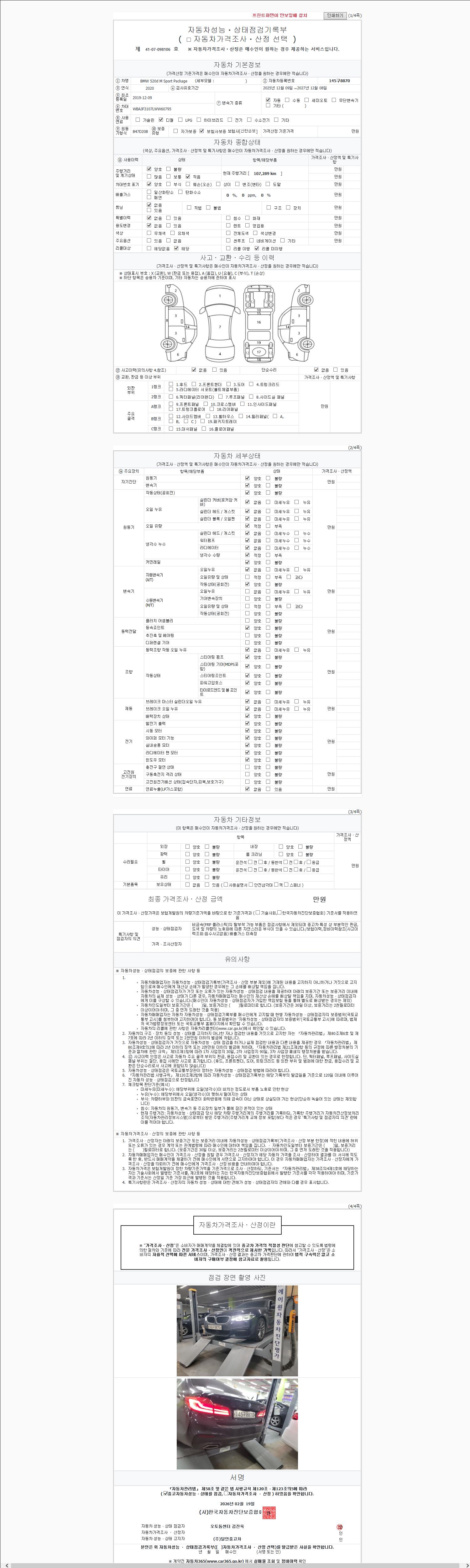 -중고자동차 매매업자를 통해 차량을 구입하실 경우 반드시 "중고자동차 성능, 상태점검 기록부"를 교뷰 받으셔야 하며, 매매업자는 반드시 의무 교부 하여야 압니다.