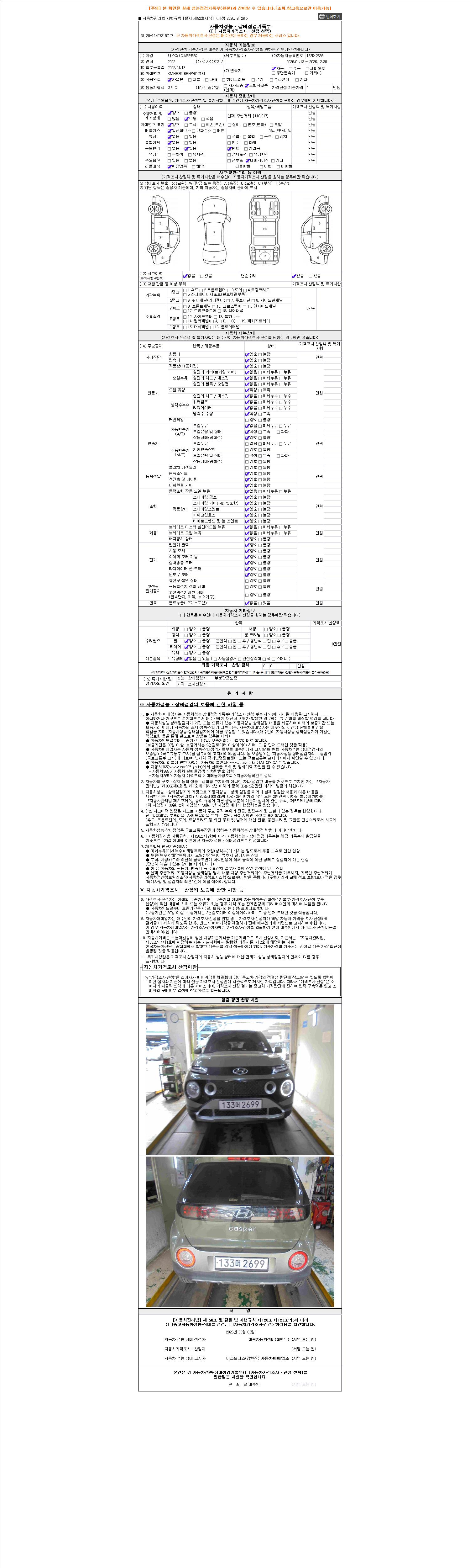 - 2. 차량 등록증이나 성능점검지 등을 상담자에게 요청및 확인하시고 사전에 미리 점검 하시기를 권유드립니다.