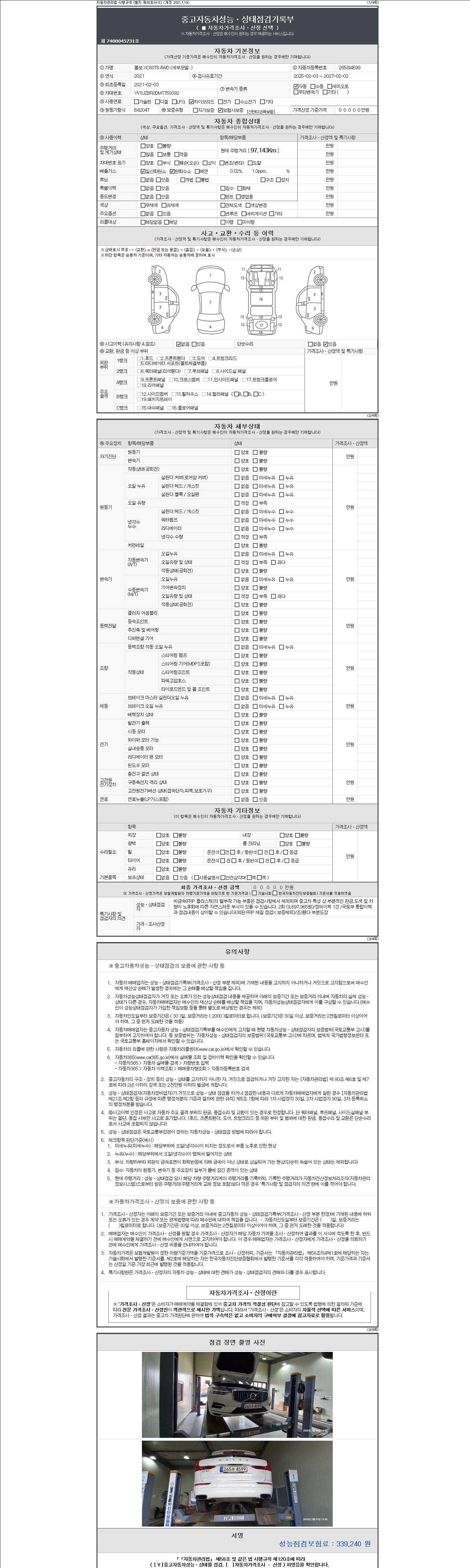 -중고자동차 매매업자를 통해 차량을 구입하실 경우 반드시 "중고자동차 성능, 상태점검 기록부"를 교뷰 받으셔야 하며, 매매업자는 반드시 의무 교부 하여야 압니다.