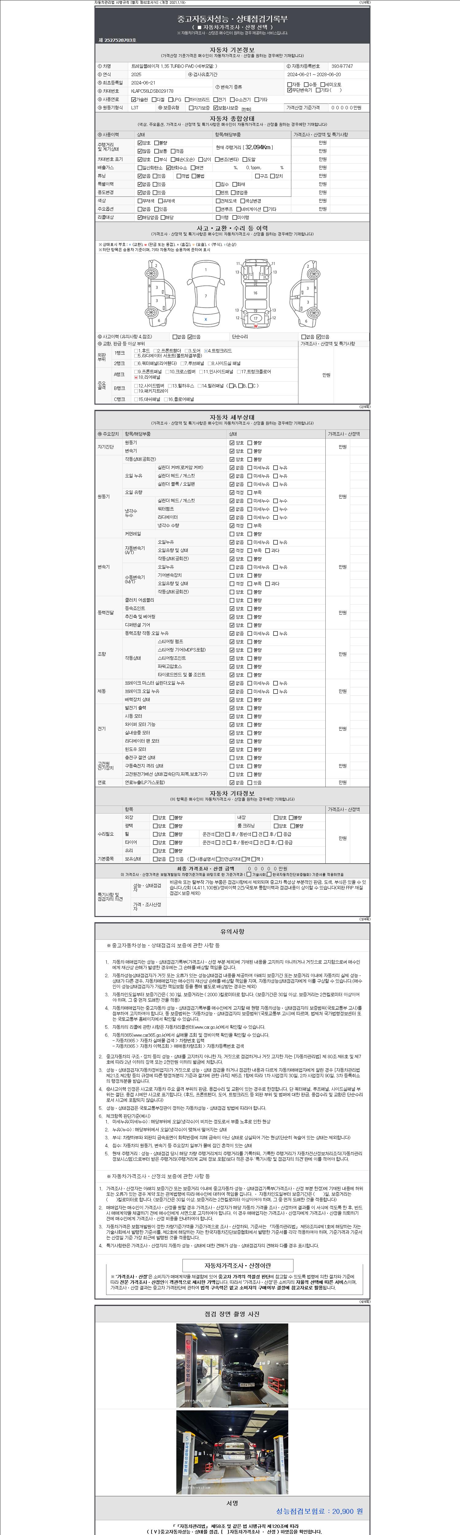-중고자동차 매매업자를 통해 차량을 구입하실 경우 반드시 "중고자동차 성능, 상태점검 기록부"를 교뷰 받으셔야 하며, 매매업자는 반드시 의무 교부 하여야 압니다.