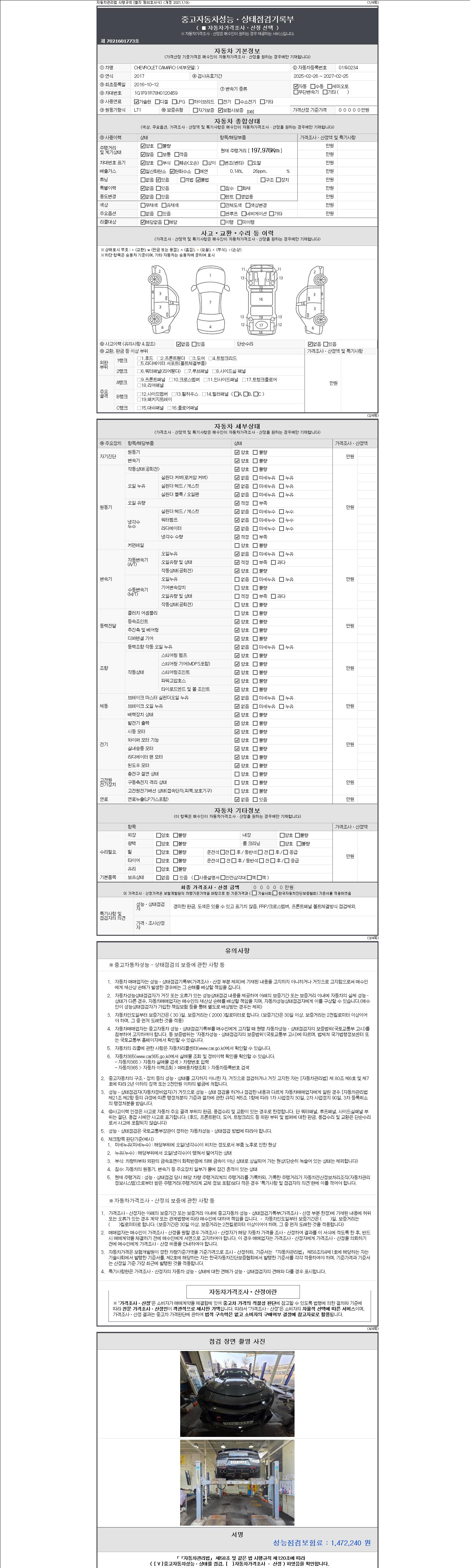 | 주행거리 | 197,964 km | 차량번호 | 01두0234 | 사고유무 | 성능기록부 참조 | 제시번호 | 제 2147483647 호 |