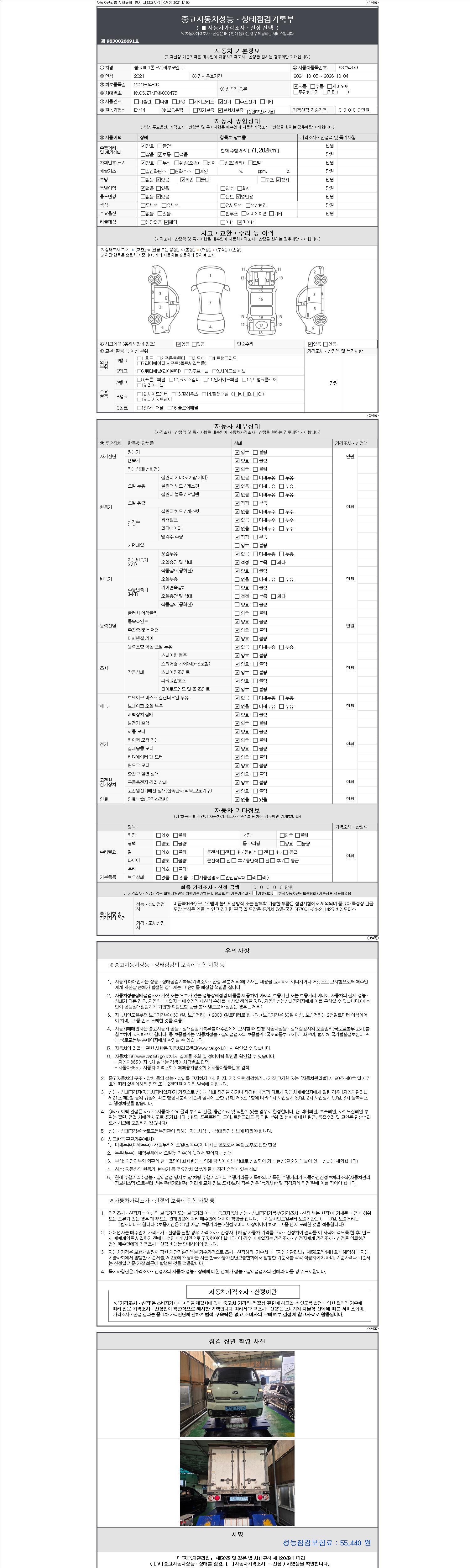 | 주행거리 | 71,202 km | 차량번호 | 93보4379 | 사고유무 | 성능기록부 참조 | 제시번호 | 제 2147483647 호 |