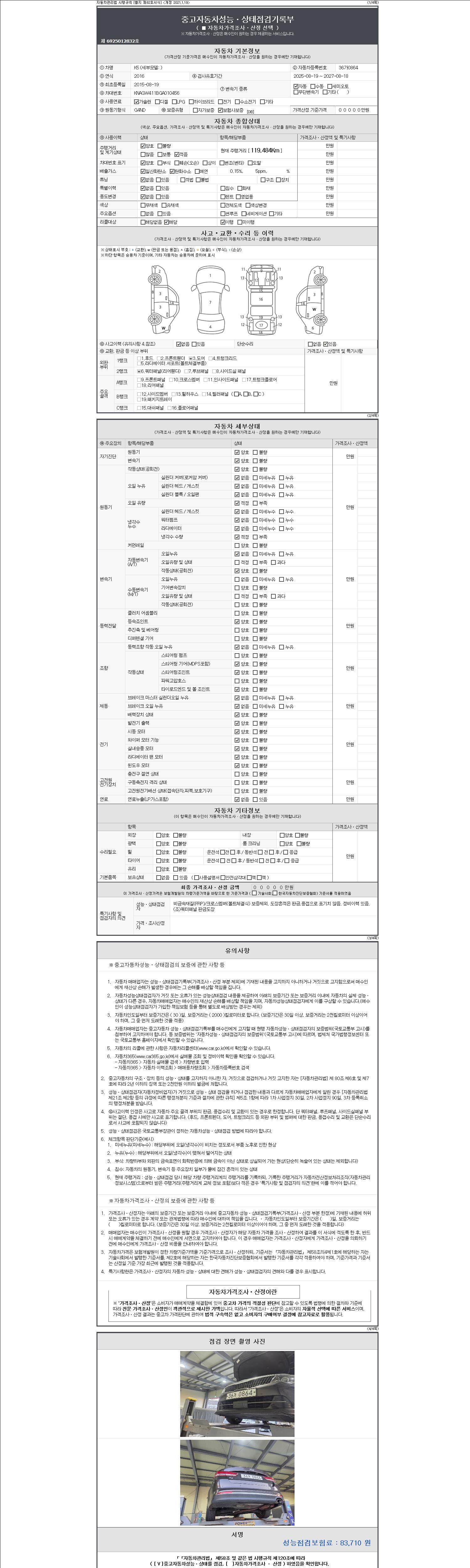 - 사고유무 : 성능기록부 참조