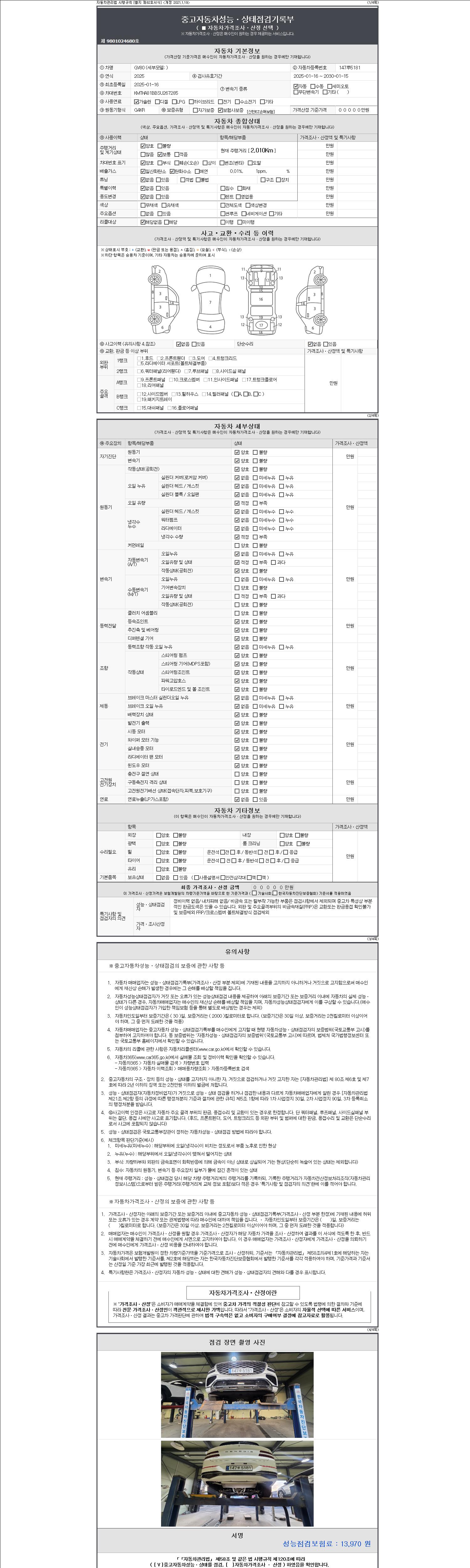 - 2. 차량 등록증이나 성능점검지 등을 상담자에게 요청및 확인하시고 사전에 미리 점검 하시기를 권유드립니다.