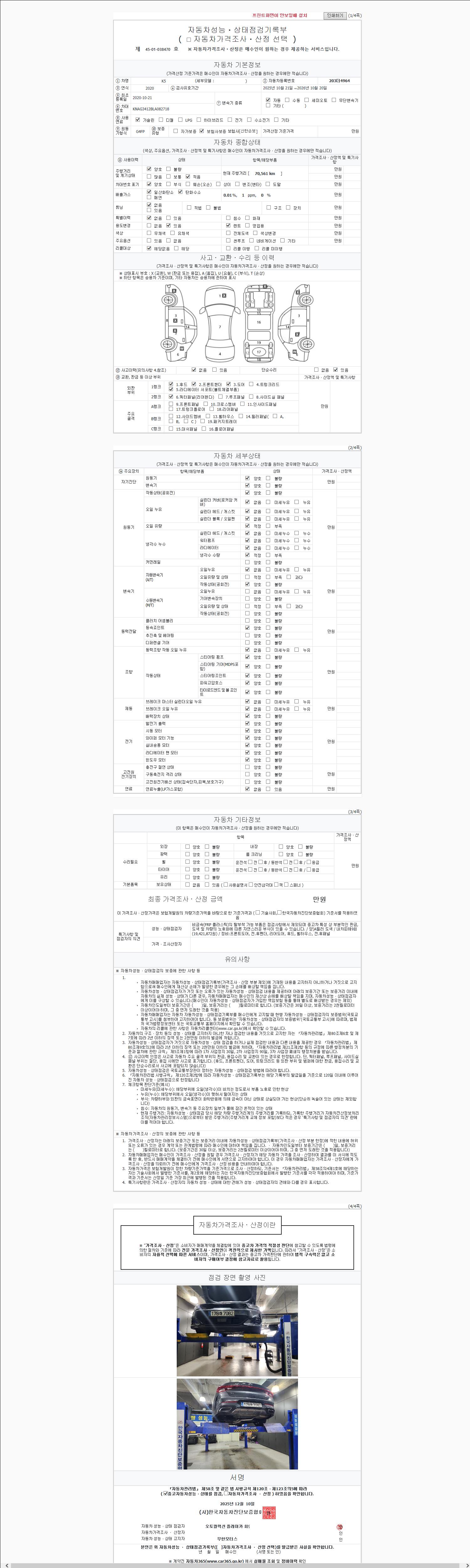 - 2. 차량 등록증이나 성능점검지 등을 상담자에게 요청및 확인하시고 사전에 미리 점검 하시기를 권유드립니다.
