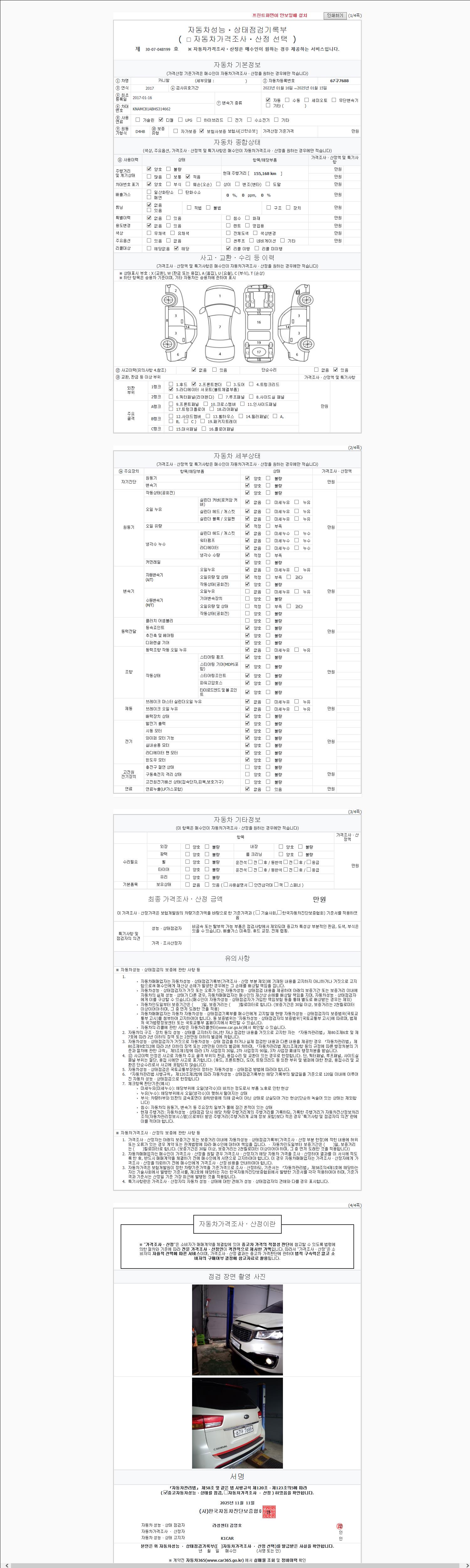 - 2. 차량 등록증이나 성능점검지 등을 상담자에게 요청및 확인하시고 사전에 미리 점검 하시기를 권유드립니다.