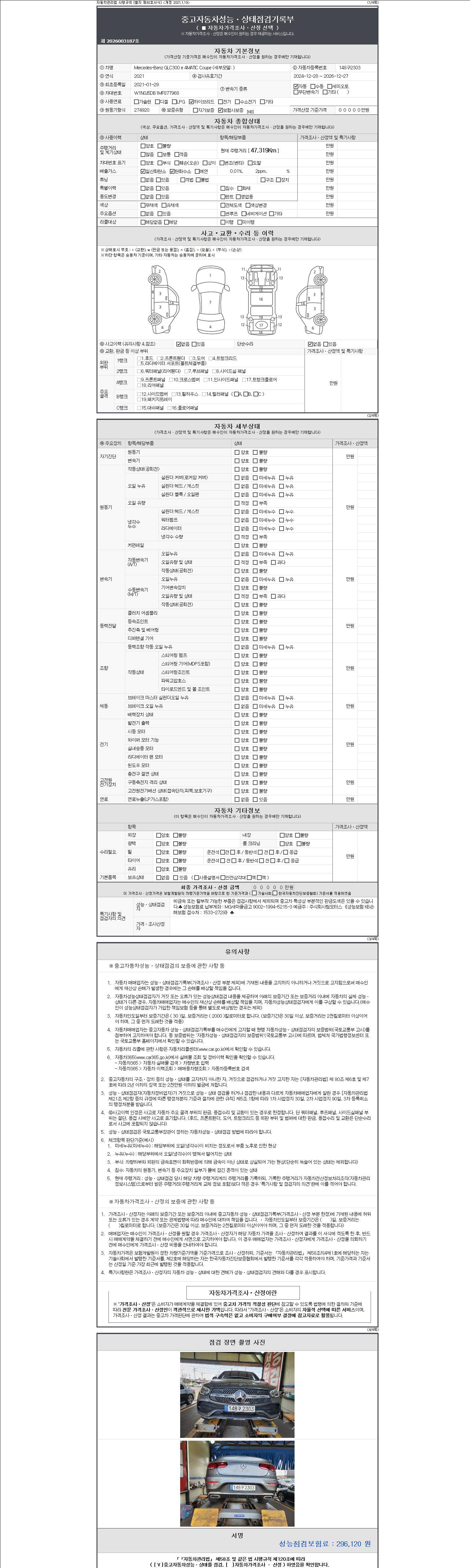 | 주행거리 | 47,319 km | 차량번호 | 148구2303 | 사고유무 | 성능기록부 참조 | 제시번호 | 제 2147483647 호 |