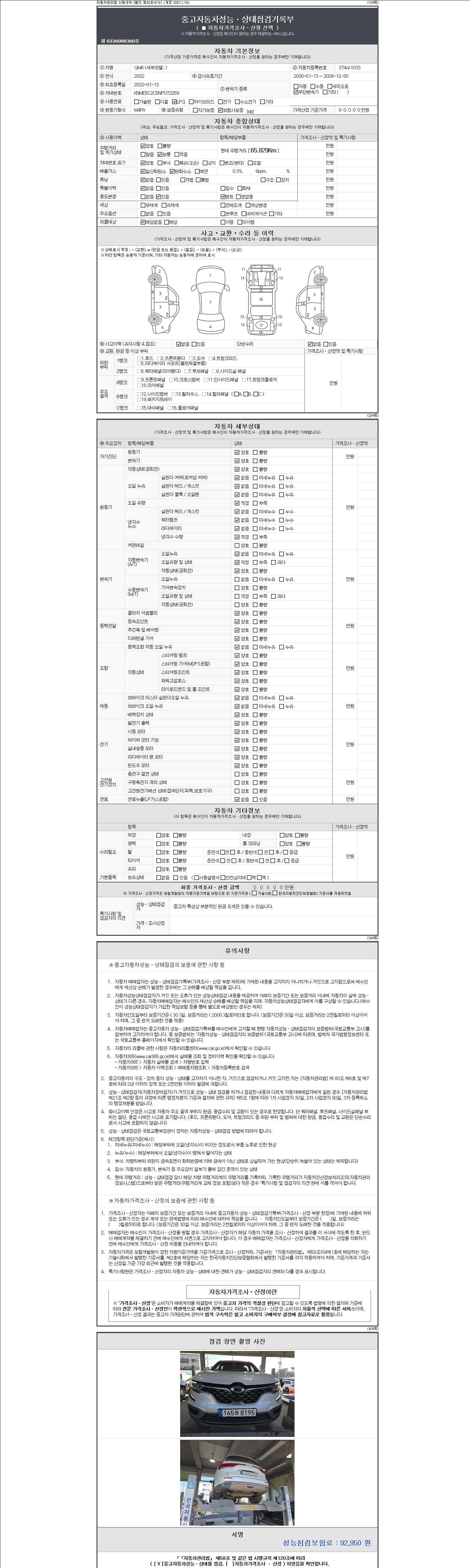 - 2. 차량 등록증이나 성능점검지 등을 상담자에게 요청및 확인하시고 사전에 미리 점검 하시기를 권유드립니다.