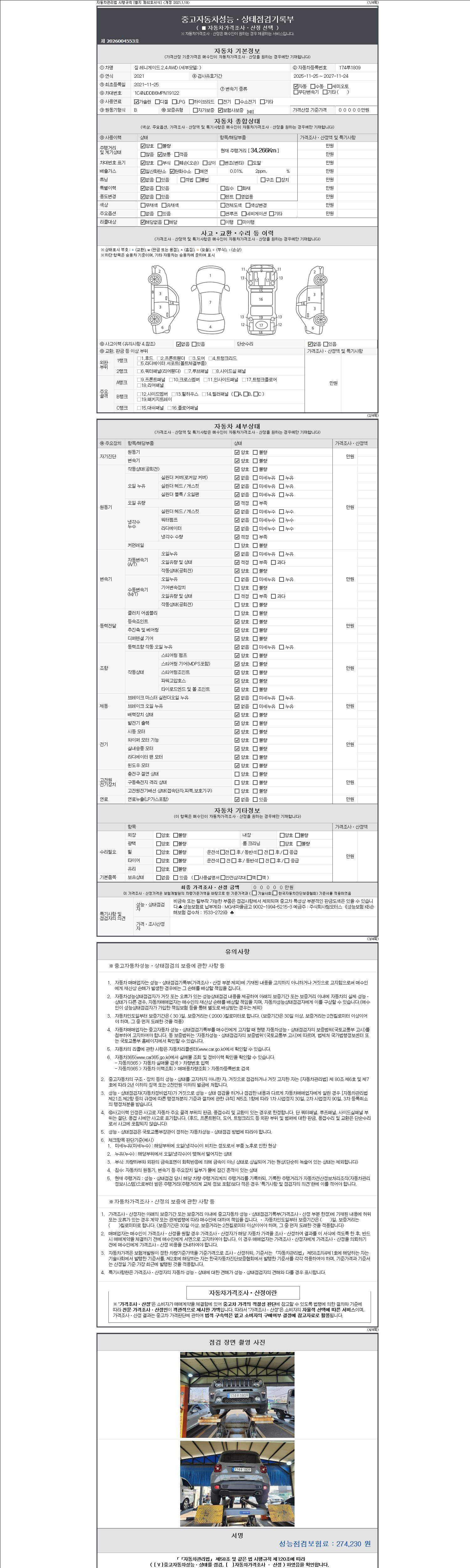 | 주행거리 | 34,266 km | 차량번호 | 174루1809 | 사고유무 | 성능기록부 참조 | 제시번호 | 제 2147483647 호 |