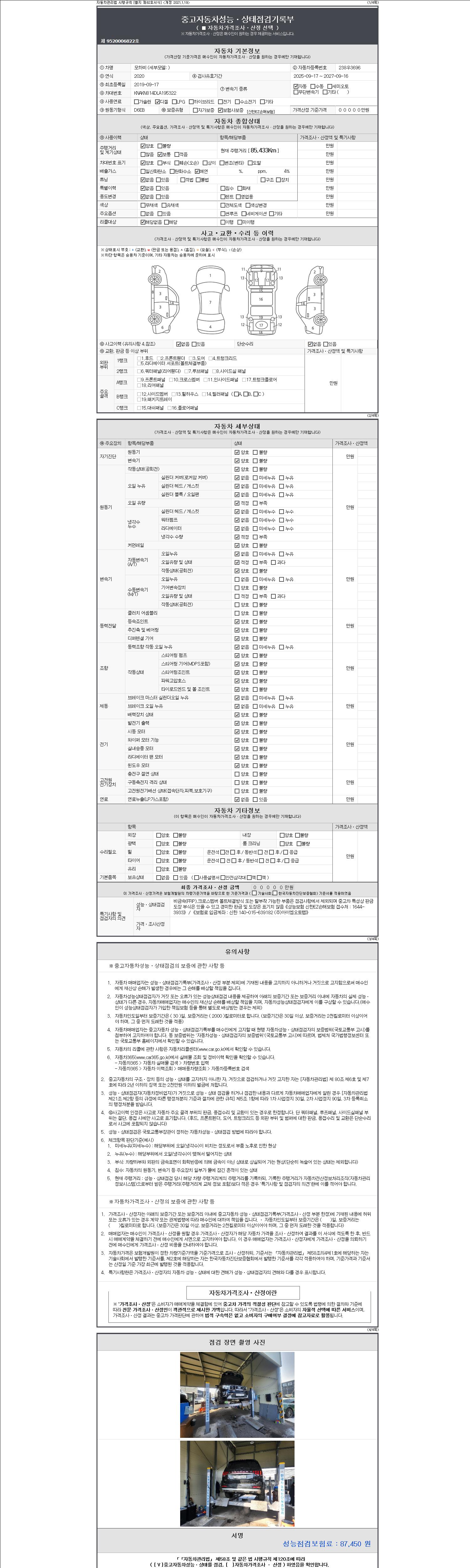 - 2. 차량 등록증이나 성능점검지 등을 상담자에게 요청및 확인하시고 사전에 미리 점검 하시기를 권유드립니다.