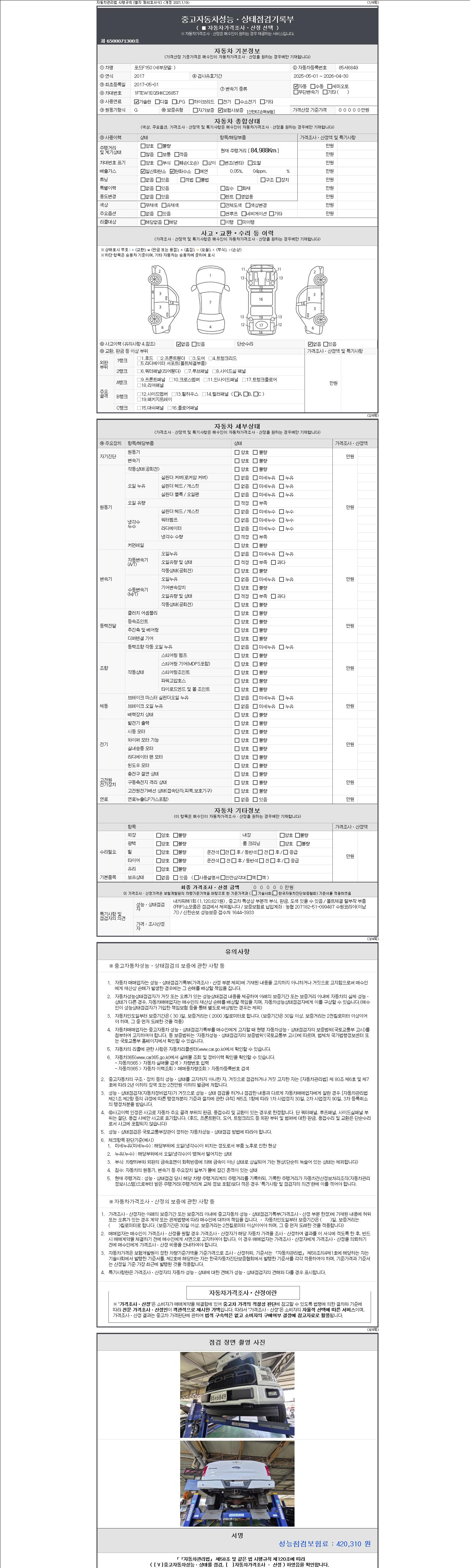 - 2. 차량 등록증이나 성능점검지 등을 상담자에게 요청및 확인하시고 사전에 미리 점검 하시기를 권유드립니다.
