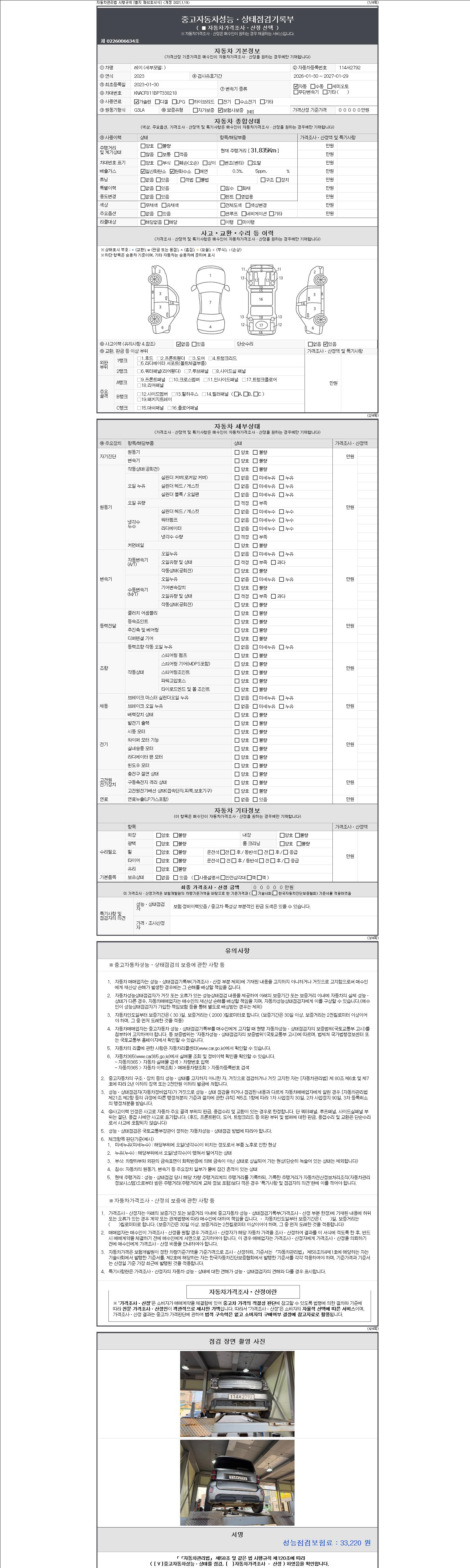 | 주행거리 | 31,835 km | 차량번호 | 114서2792 | 사고유무 | 성능기록부 참조 | 제시번호 | 제 2147483647 호 |
