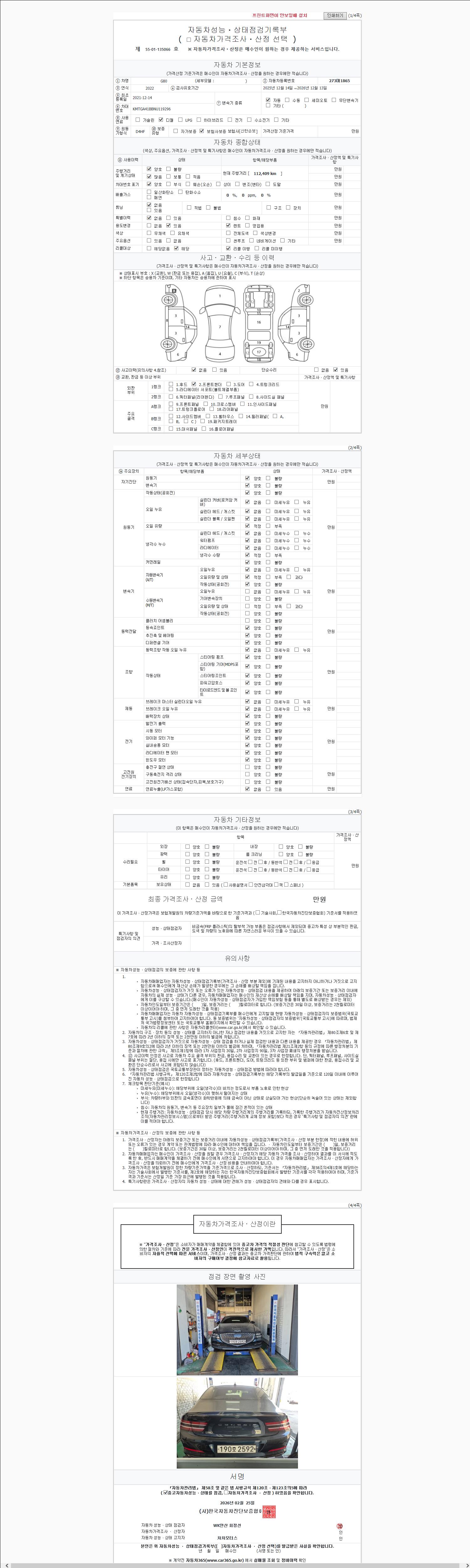 | 주행거리 | 112,409 km | 차량번호 | 273머1865 | 사고유무 | 성능기록부 참조 | 제시번호 | 제 2147483647 호 |