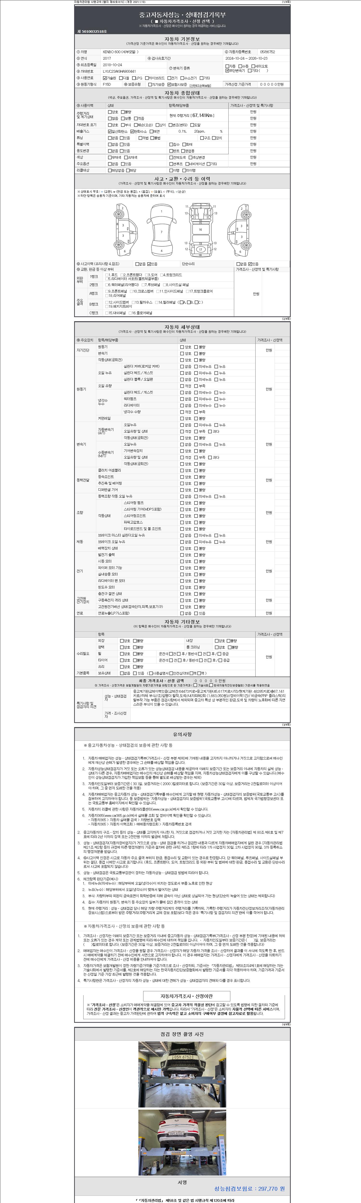 | 주행거리 | 67,141 km | 차량번호 | 05러6752 | 사고유무 | 성능기록부 참조 | 제시번호 | 제 2147483647 호 |