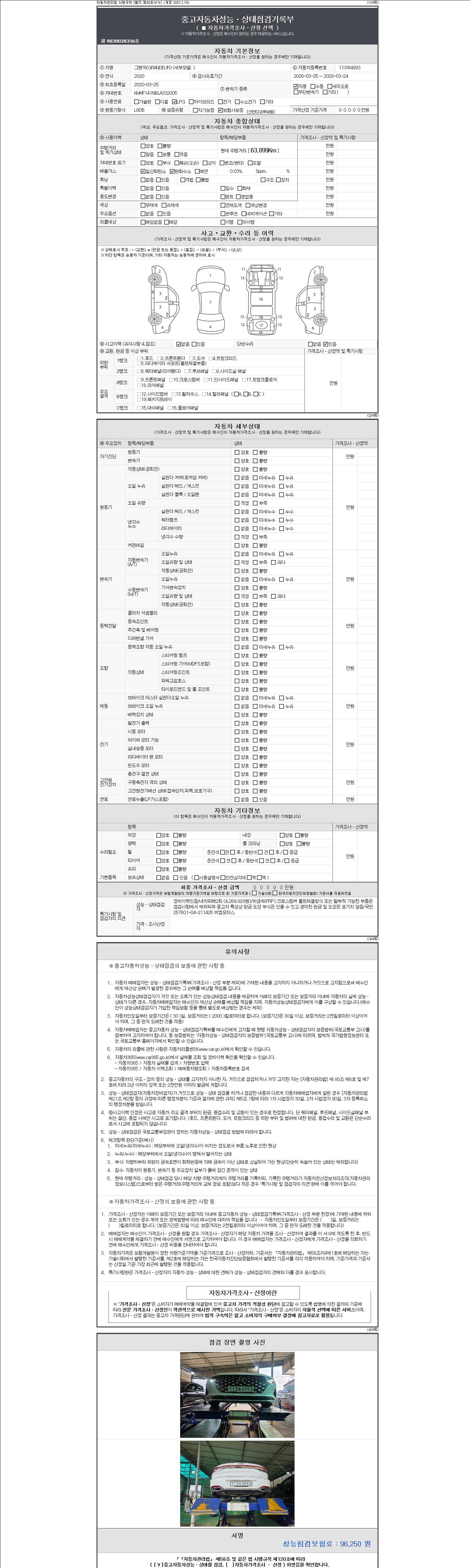 | 주행거리 | 63,899 km | 차량번호 | 113머4993 | 사고유무 | 성능기록부 참조 | 제시번호 | 제 2147483647 호 |