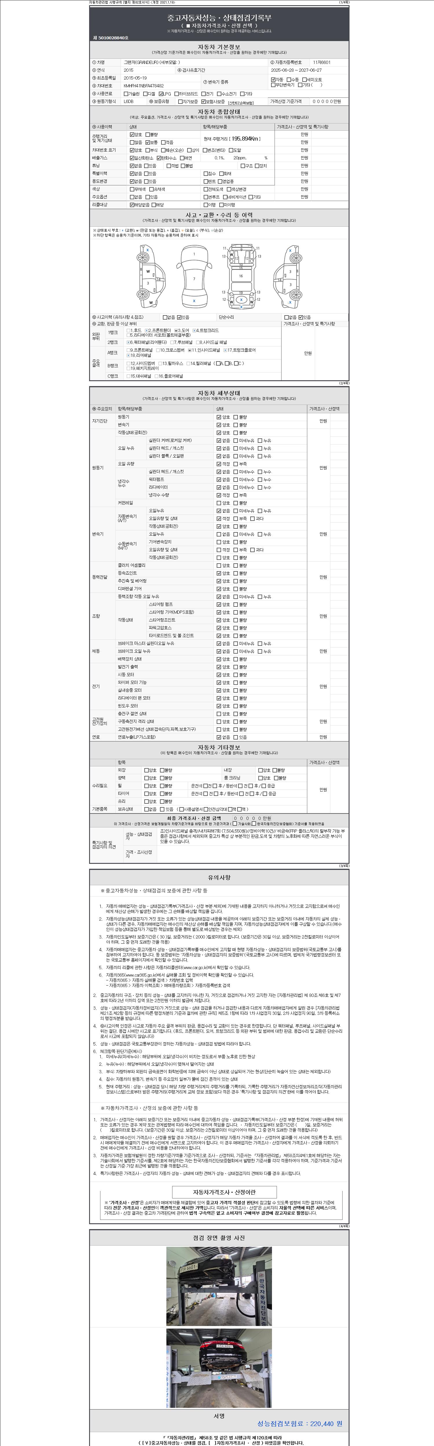 | 주행거리 | 195,894 km | 차량번호 | 11저6601 | 사고유무 | 성능기록부 참조 | 제시번호 | 제 2147483647 호 |