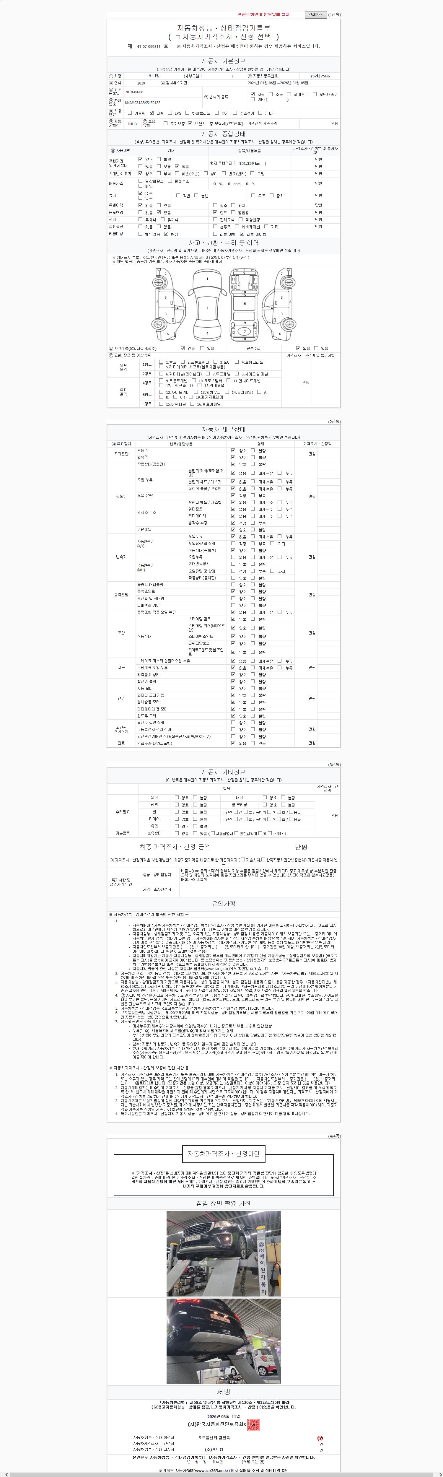 - 2. 차량 등록증이나 성능점검지 등을 상담자에게 요청및 확인하시고 사전에 미리 점검 하시기를 권유드립니다.
