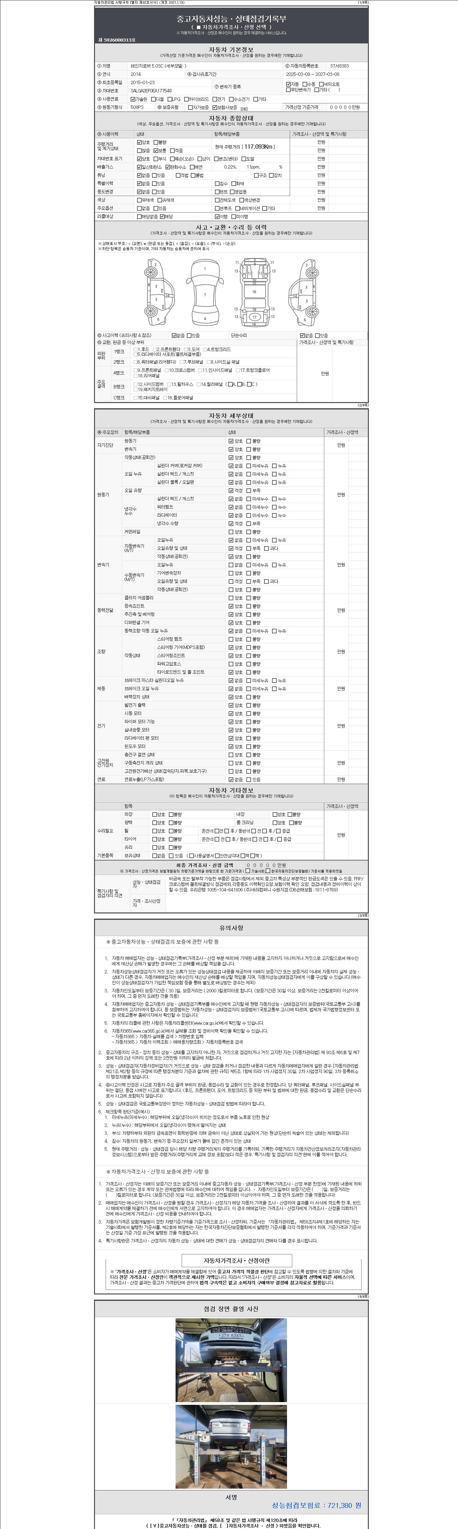 | 주행거리 | 117,069 km | 차량번호 | 37서8383 | 사고유무 | 성능기록부 참조 | 제시번호 | 제 2147483647 호 |